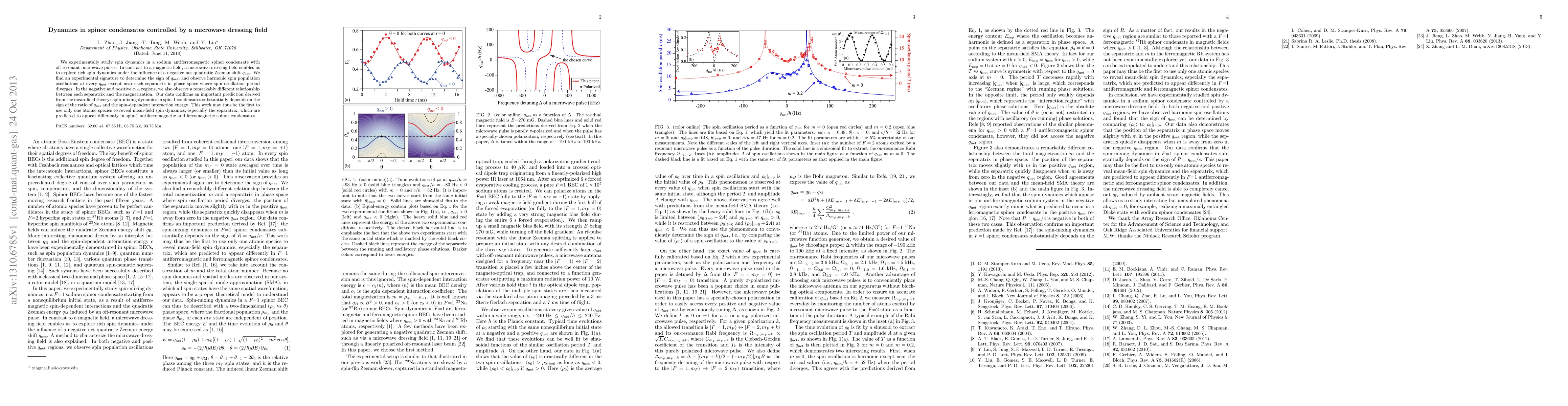 We experimentally study spin dynamics in a sodium antiferromagnetic spinor condensate with off-resonant microwave pulses. In contrast to a magnetic field, a microwave dressing field enables us to explore rich spin dynamics under the influence of a negative net quadratic Zeeman shift $q_{\rm net}$. We find an experimental signature to determine the sign of $q_{\rm net}$, and observe harmonic spin population oscillations at every $q_{\rm net}$ except near each separatrix in phase space where spin oscillation period diverges. In the negative and positive $q_{\rm net}$ regions, we also observe a remarkably different relationship between each separatrix and the magnetization. Our data confirms an important prediction derived from the mean-field theory: spin-mixing dynamics in spin-1 condensates substantially depends on the sign of the ratio of $q_{\rm net}$ and the spin-dependent interaction energy. This work may thus be the first to use only one atomic species to reveal mean-field spin dynamics, especially the separatrix, which are predicted to appear differently in spin-1 antiferromagnetic and ferromagnetic spinor condensates.