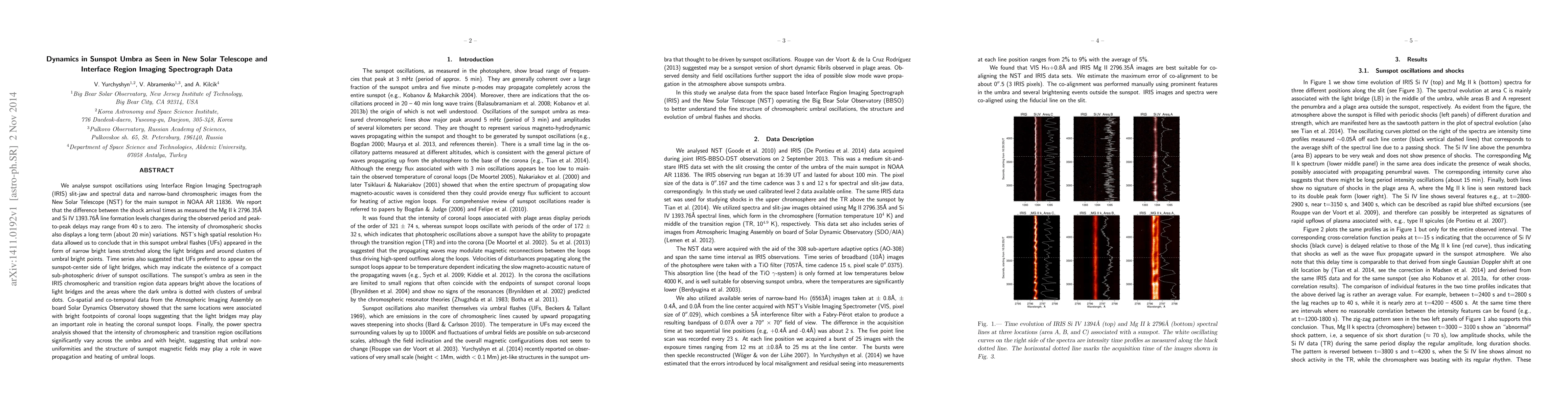 This study analyzes sunspot oscillations using high-resolution data from the IRIS and NST, revealing variations in shock arrival times and the appearance of umbral flashes. The findings suggest a compact sub-photospheric driver and the importance of light bridges in heating coronal sunspot loops.