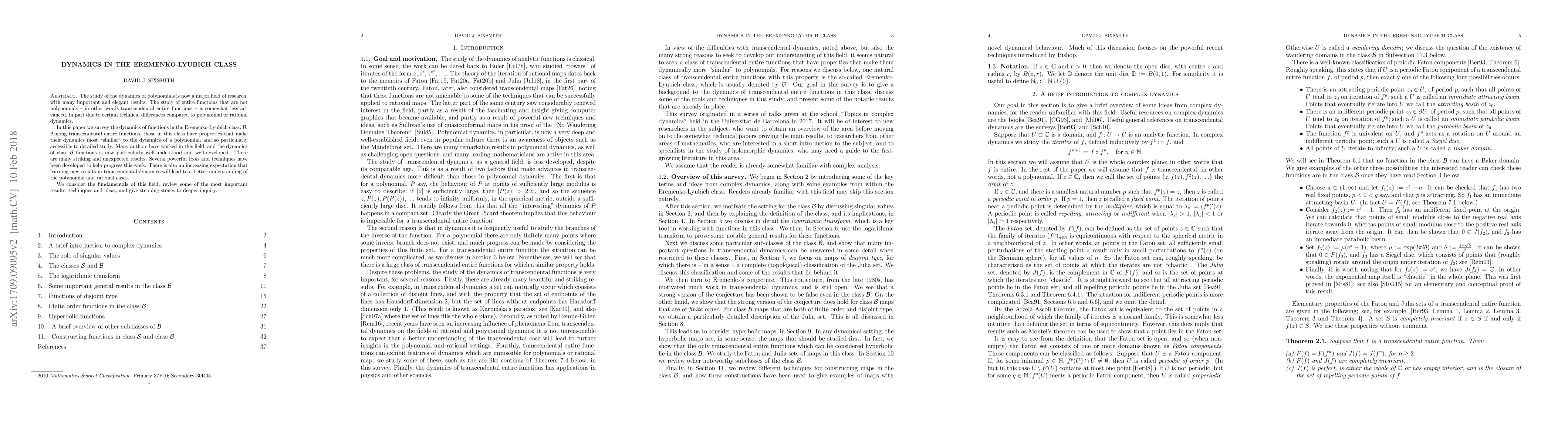The study of the dynamics of polynomials is now a major field of research, with many important and elegant results. The study of entire functions that are not polynomials -- in other words transcendental entire functions -- is somewhat less advanced, in part due to certain technical differences compared to polynomial or rational dynamics. In this paper we survey the dynamics of functions in the Eremenko-Lyubich class, $\mathcal{B}$. Among transcendental entire functions, those in this class have properties that make their dynamics most "similar" to the dynamics of a polynomial, and so particularly accessible to detailed study. Many authors have worked in this field, and the dynamics of class $\mathcal{B}$ functions is now particularly well-understood and well-developed. There are many striking and unexpected results. Several powerful tools and techniques have been developed to help progress this work. There is also an increasing expectation that learning new results in transcendental dynamics will lead to a better understanding of the polynomial and rational cases. We consider the fundamentals of this field, review some of the most important results, techniques and ideas, and give stepping-stones to deeper inquiry.