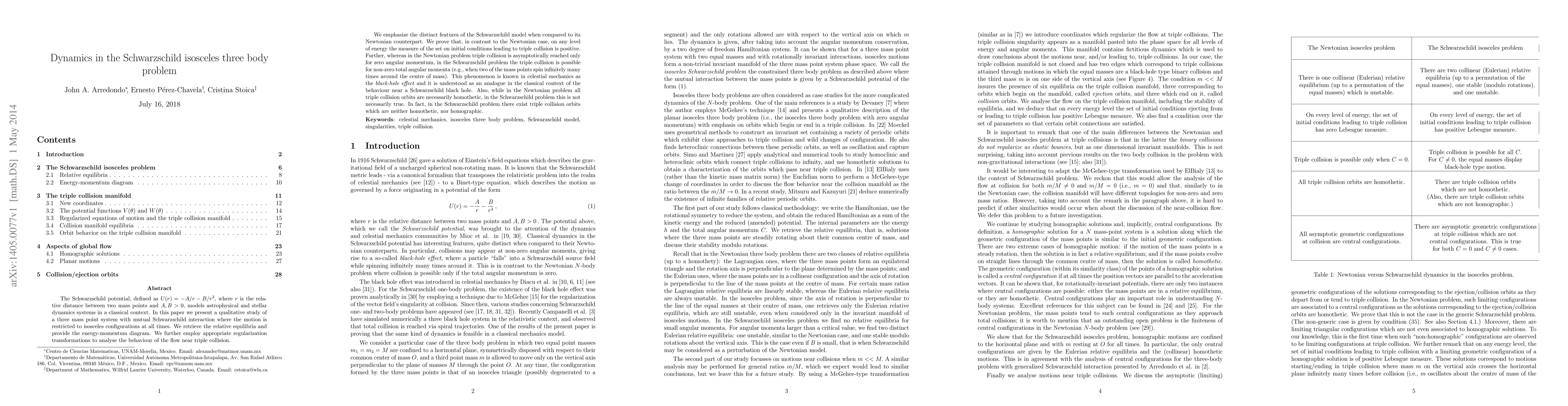 This paper studies the dynamics of a three-body system under the Schwarzschild potential, focusing on isosceles configurations. It reveals that unlike the Newtonian model, the Schwarzschild system allows triple collisions for non-zero angular momentum, a phenomenon termed the "black-hole effect."