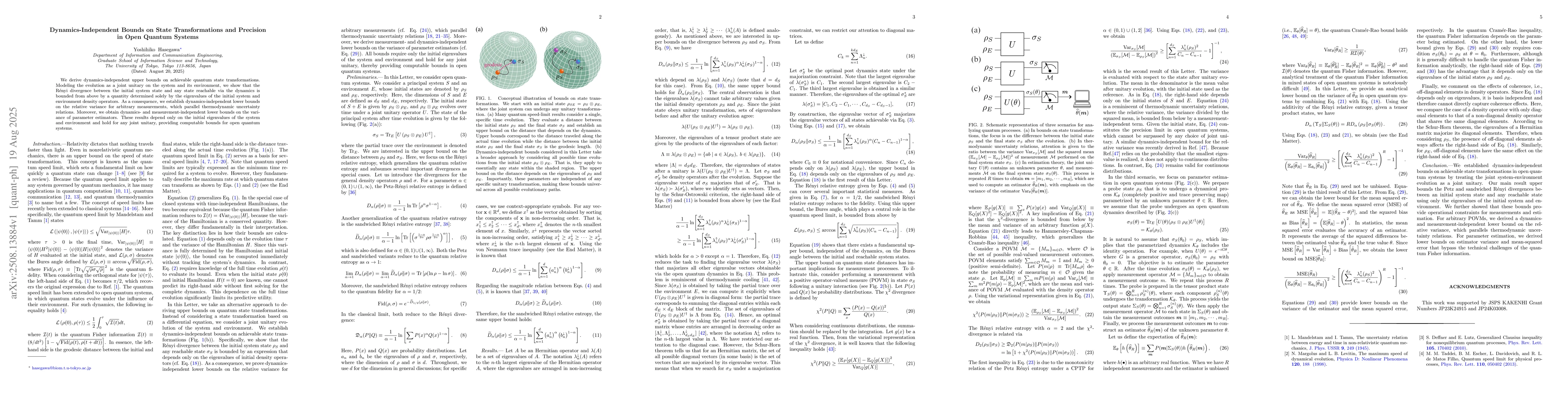 We derive dynamics-independent upper bounds on achievable quantum state transformations. Modeling the evolution as a joint unitary on the system and its environment, we show that the R\'enyi divergence between the initial system state and any state reachable via the dynamics is bounded from above by a quantity determined solely by the eigenvalues of the initial system and environment density operators. As a consequence, we establish dynamics-independent lower bounds on the relative variance for arbitrary measurements, which parallel thermodynamic uncertainty relations. Moreover, we obtain dynamics- and measurement-independent lower bounds on the variance of parameter estimators. These results depend only on the initial eigenvalues of the system and environment and hold for any joint unitary, providing computable bounds for open quantum systems.