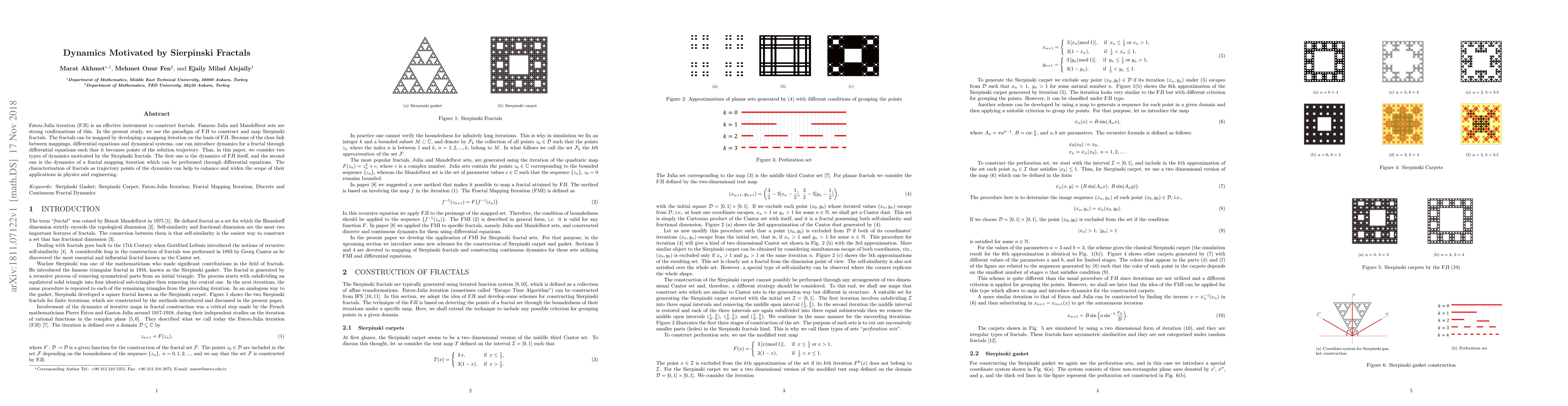 This paper explores the construction of Sierpinski fractals using Fatou-Julia iteration and introduces dynamics motivated by these fractals through differential equations. The study characterizes fractals as trajectory points of these dynamics, potentially expanding their applications in physics and engineering.