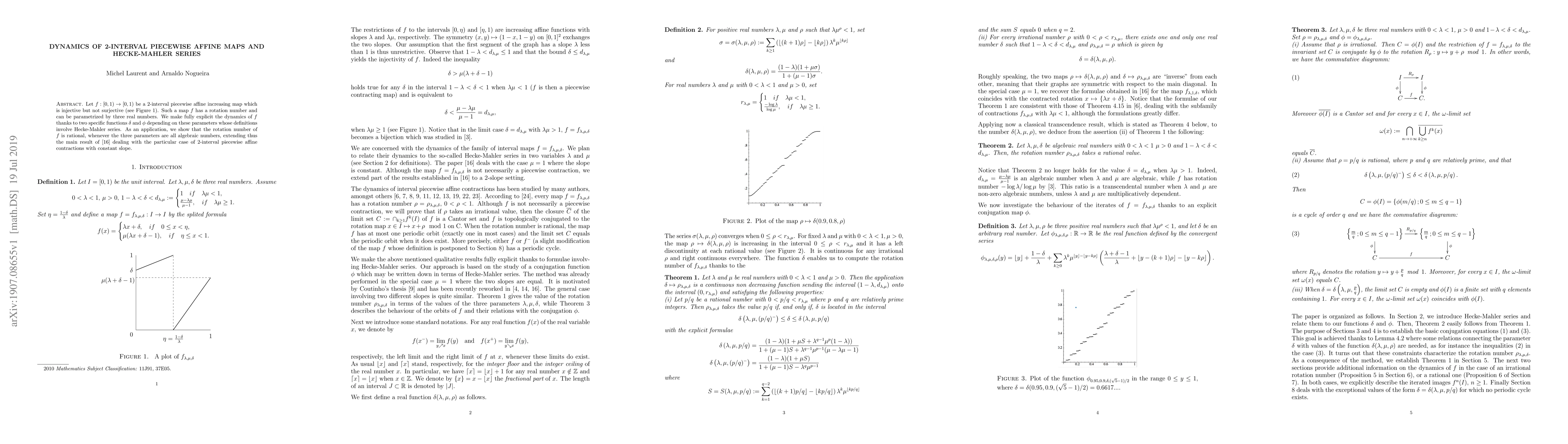 Let $f : [0,1)\rightarrow [0,1)$ be a $2$-interval piecewise affine increasing map which is injective but not surjective. Such a map $f$ has a rotation number and can be parametrized by three real numbers. We make fully explicit the dynamics of $f$ thanks to two specific functions $\delta$ and $\phi$ depending on these parameters whose definitions involve Hecke-Mahler series. As an application, we show that the rotation number of $f$ is rational, when the three parameters are algebraic numbers.
