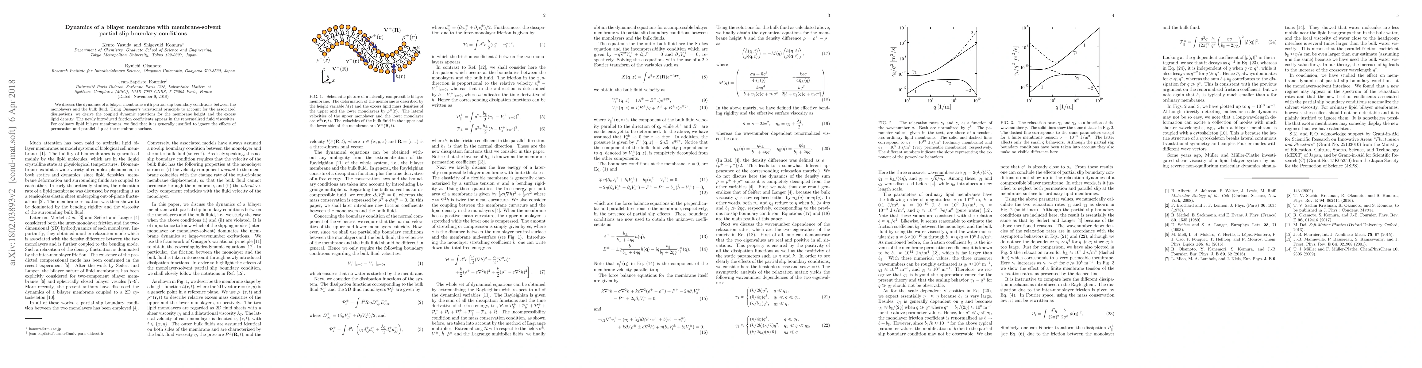 We discuss the dynamics of a bilayer membrane with partial slip boundary conditions between the monolayers and the bulk fluid. Using Onsager's variational principle to account for the associated dissipations, we derive the coupled dynamic equations for the membrane height and the excess lipid density. The newly introduced friction coefficients appear in the renormalized fluid viscosities. For ordinary lipid bilayer membranes, we find that it is generally justified to ignore the effects of permeation and parallel slip at the membrane surface.