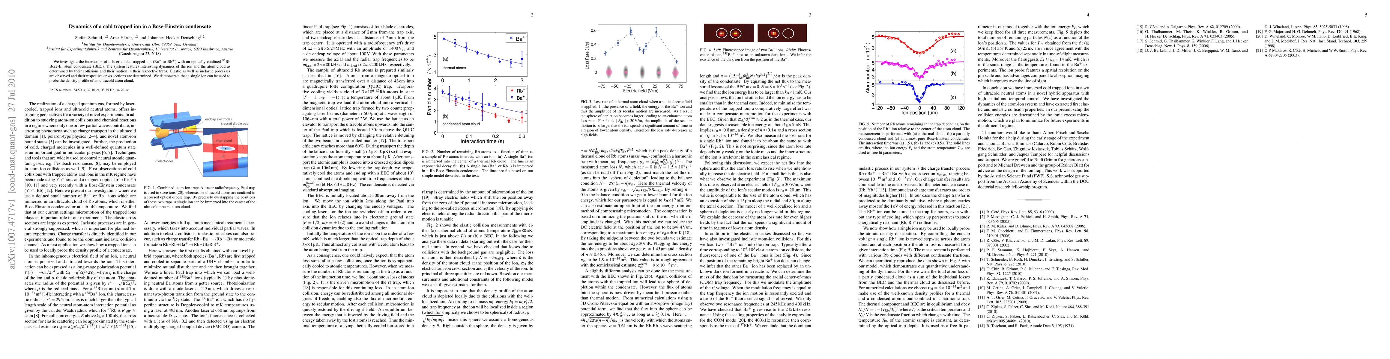 This study explores the interaction between a laser-cooled trapped ion and an optically confined $^{87}$Rb Bose-Einstein condensate, observing both elastic and inelastic collision dynamics. The research demonstrates that a single ion can probe the density profile of the ultracold atom cloud.