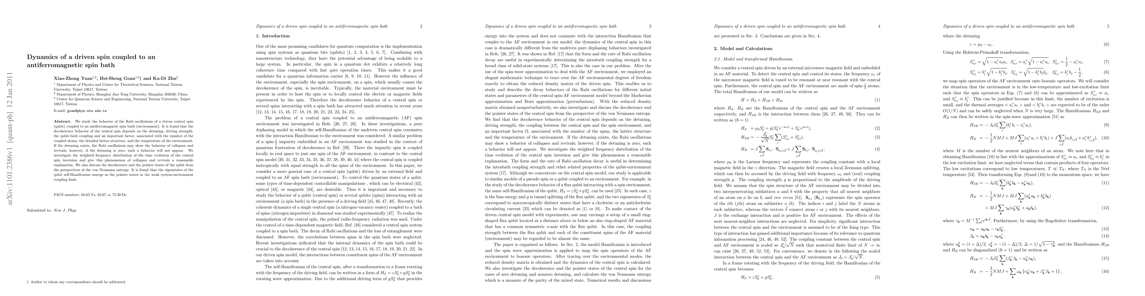This paper investigates the dynamics of a driven spin (qubit) interacting with an antiferromagnetic spin bath, revealing that decoherence behavior is influenced by detuning, driving strength, and lattice structure. The study finds that Rabi oscillations exhibit collapses and revivals under non-zero detuning, while zero detuning suppresses this behavior, and provides an explanation for this phenomenon through the weighted frequency distribution.