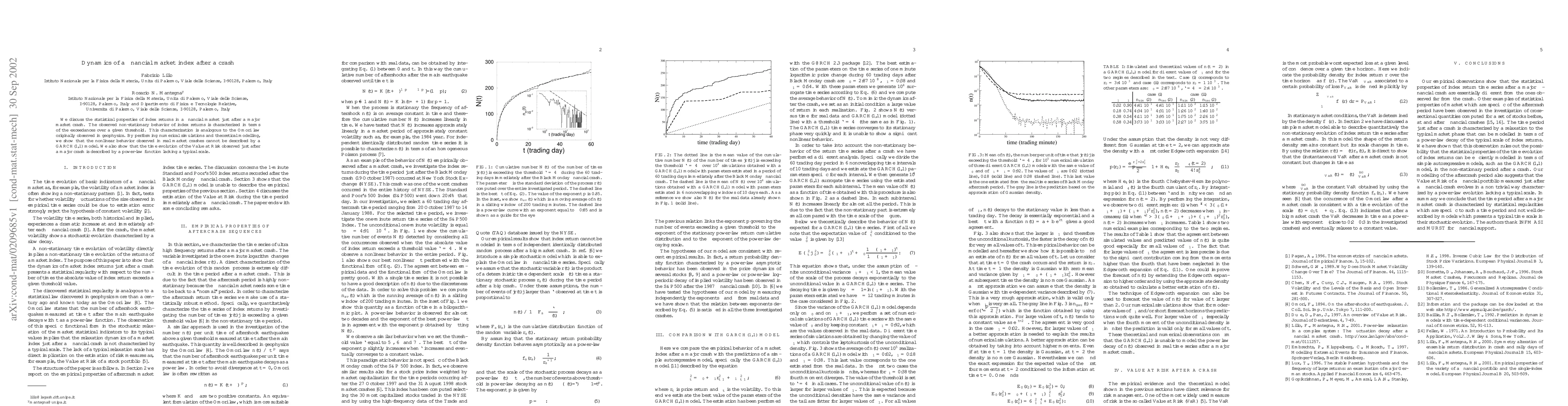 We discuss the statistical properties of index returns in a financial market just after a major market crash. The observed non-stationary behavior of index returns is characterized in terms of the exceedances over a given threshold. This characterization is analogous to the Omori law originally observed in geophysics. By performing numerical simulations and theoretical modelling, we show that the nonlinear behavior observed in real market crashes cannot be described by a GARCH(1,1) model. We also show that the time evolution of the Value at Risk observed just after a major crash is described by a power-law function lacking a typical scale.