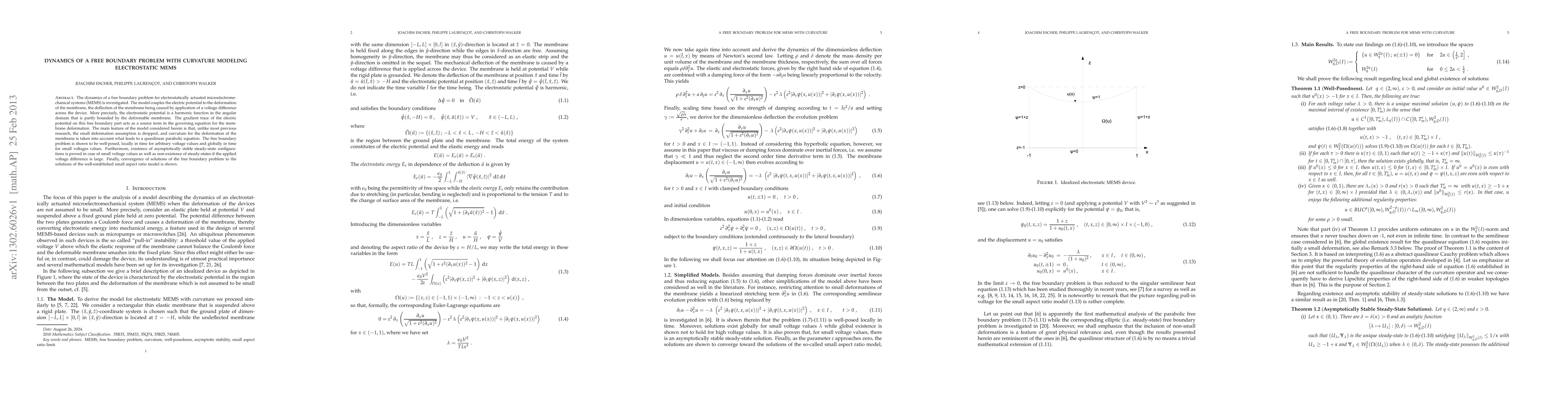 This paper investigates the dynamics of a free boundary problem in electrostatically actuated MEMS, coupling the electric potential with the membrane deformation. Unlike previous models, it accounts for membrane curvature, leading to a quasilinear parabolic equation, and proves the problem's well-posedness and existence of stable steady-states under small voltages.