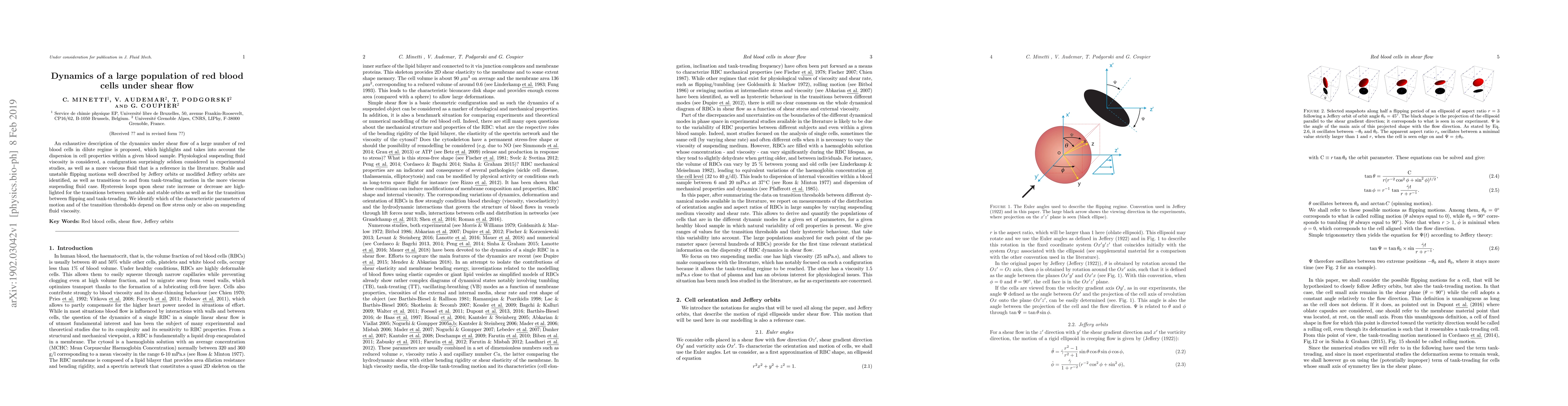 An exhaustive description of the dynamics under shear flow of a large number of red blood cells in dilute regime is proposed, which highlights and takes into account the dispersion in cell properties within a given blood sample. Physiological suspending fluid viscosity is considered, a configuration surprisingly seldom considered in experimental studies, as well as a more viscous fluid that is a reference in the literature. Stable and unstable flipping motions well described by Jeffery orbits or modified Jeffery orbits are identified, as well as transitions to and from tank-treading motion in the more viscous suspending fluid case. Hysteresis loops upon shear rate increase or decrease are highlighted for the transitions between unstable and stable orbits as well as for the transition between flipping and tank-treading. We identify which of the characteristic parameters of motion and of the transition thresholds depend on flow stress only or also on suspending fluid viscosity.
