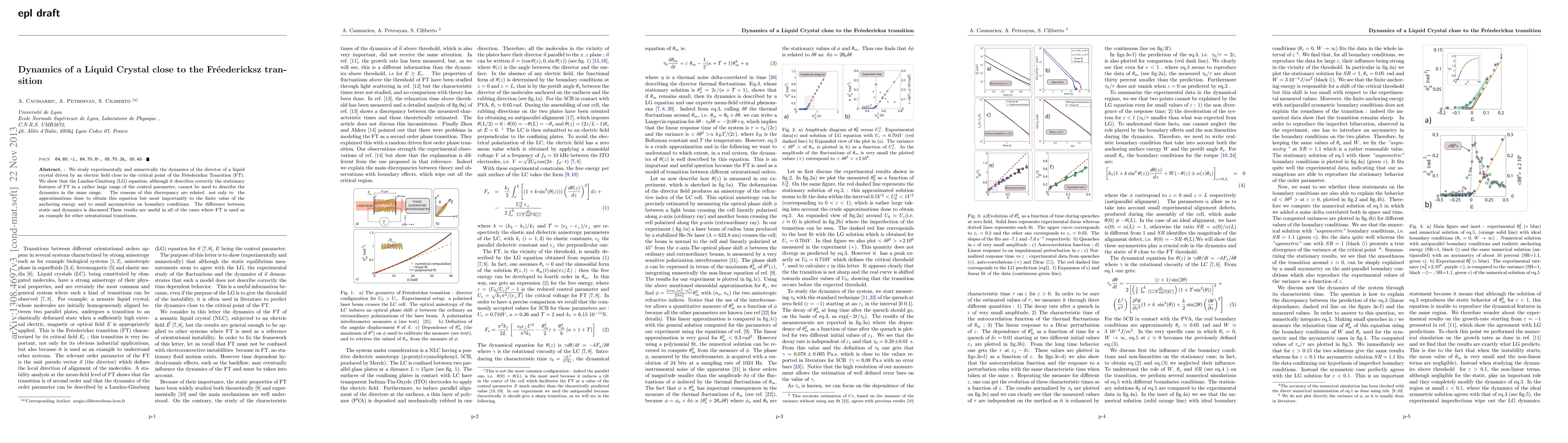 We report experimental and numerical evidences that the dynamics of the director of a liquid crystal driven by an electric field close to the critical point of the Fr\'eedericksz Transition(FT) is not described by a Landau-Ginzburg (LG) equation as it is usually done in literature. The reasons are related to the very crude approximations done to obtain this equation, to the finite value of the anchoring energy and to small asymmetries on boundary conditions. We also discuss the difference between the use of LG equation for the statics and the dynamics. These results are useful in all cases where FT is used as an example for other orientational transitions.