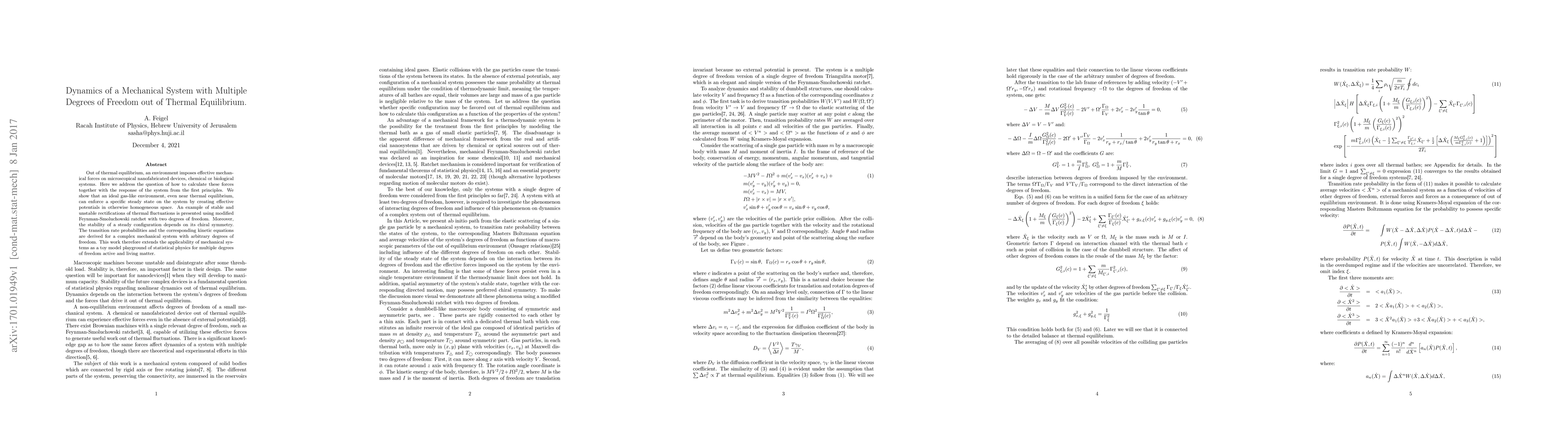 Out of thermal equilibrium, an environment imposes effective mechanical forces on microscopical nanofabricated devices, chemical or biological systems. Here we address the question of how to calculate these forces together with the response of the system from the first principles. We show that an ideal gas-like environment, even near thermal equilibrium, can enforce a specific steady state on the system by creating effective potentials in otherwise homogeneous space. An example of stable and unstable rectifications of thermal fluctuations is presented using modified Feynman-Smoluchowski ratchet with two degrees of freedom. Moreover, the stability of a steady configuration depends on its chiral symmetry. The transition rate probabilities and the corresponding kinetic equations are derived for a complex mechanical system with arbitrary degrees of freedom. This work therefore extends the applicability of mechanical systems as a toy model playground of statistical physics for multiple degrees of freedom active and living matter.