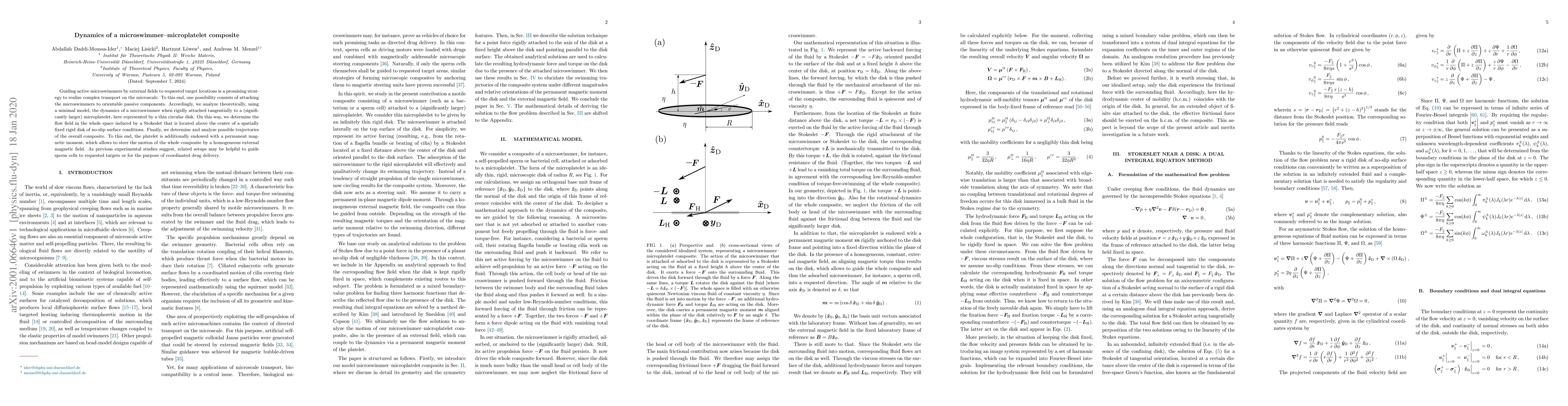 Guiding active microswimmers by external fields to requested target locations is a promising strategy to realize complex transport on the microscale. To this end, one possibility consists of attaching the microswimmers to orientable passive components. Accordingly, we analyze theoretically, using a minimal model, the dynamics of a microswimmer when rigidly attached tangentially to a (significantly larger) microplatelet, here represented by a thin circular disk. On this way, we determine the flow field in the whole space induced by a Stokeslet that is located above the center of a spatially fixed rigid disk of no-slip surface conditions. Finally, we determine and analyze possible trajectories of the overall composite. To this end, the platelet is additionally endowed with a permanent magnetic moment, which allows to steer the motion of the whole composite by a homogeneous external magnetic field. As previous experimental studies suggest, related setups may be helpful to guide sperm cells to requested targets or for the purpose of coordinated drug delivery.