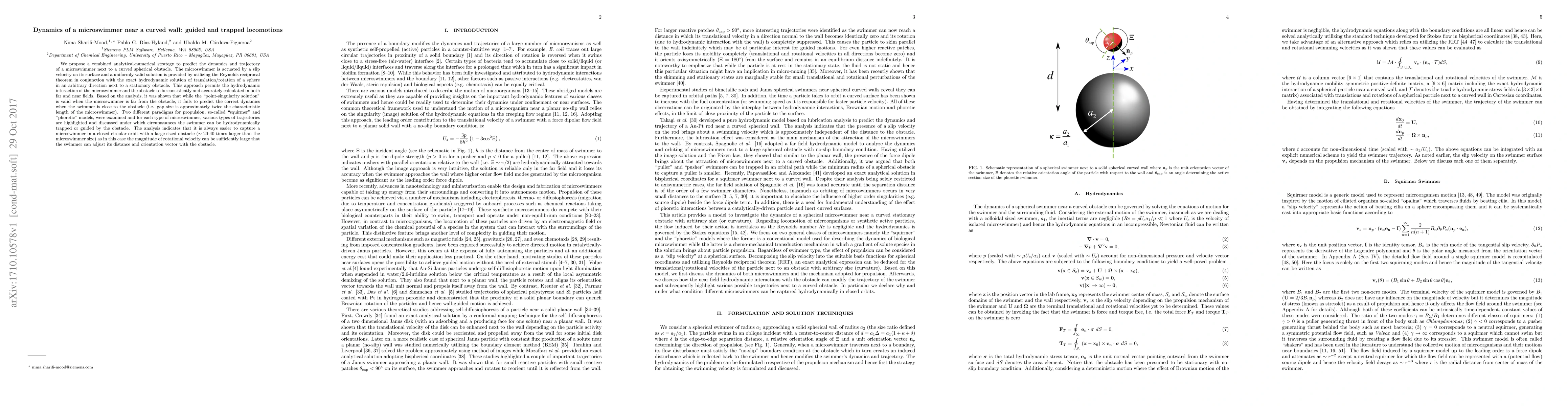 This paper employs an analytical-numerical method to study the dynamics of a microswimmer near a curved spherical obstacle, revealing distinct locomotion behaviors. It highlights the failure of the "point-singularity solution" when the swimmer is close to the obstacle and discusses the trapping and guiding effects based on different propulsion models, showing that larger obstacles can more easily capture the swimmer in a closed orbit.