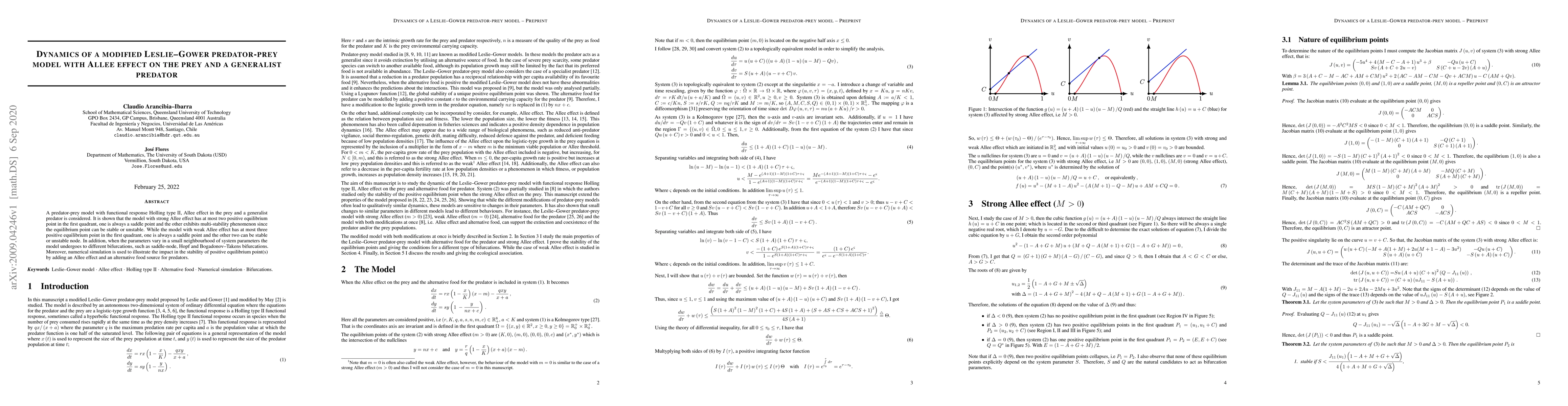 This paper examines a modified Leslie-Gower predator-prey model incorporating an Allee effect in the prey and a generalist predator. It finds that strong Allee effects lead to multi-stability, while weak effects allow for up to three equilibrium points, with bifurcations occurring under parameter variations.