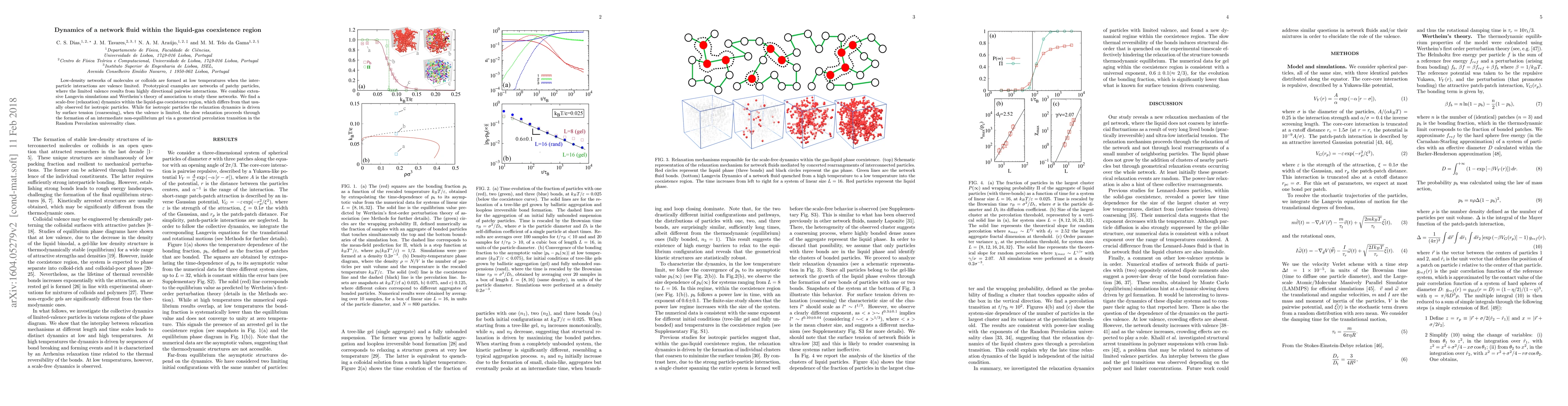 Low-density networks of molecules or colloids are formed at low temperatures when the interparticle interactions are valence limited. Prototypical examples are networks of patchy particles, where the limited valence results from highly directional pairwise interactions. We combine extensive Langevin simulations and Wertheim's theory of association to study these networks. We find a scale-free (relaxation) dynamics within the liquid-gas coexistence region, which differs from that usually observed for isotropic particles. While for isotropic particles the relaxation dynamics is driven by surface tension (coarsening), when the valence is limited, the slow relaxation proceeds through the formation of an intermediate non-equilibrium gel via a geometrical percolation transition in the Random Percolation universality class.