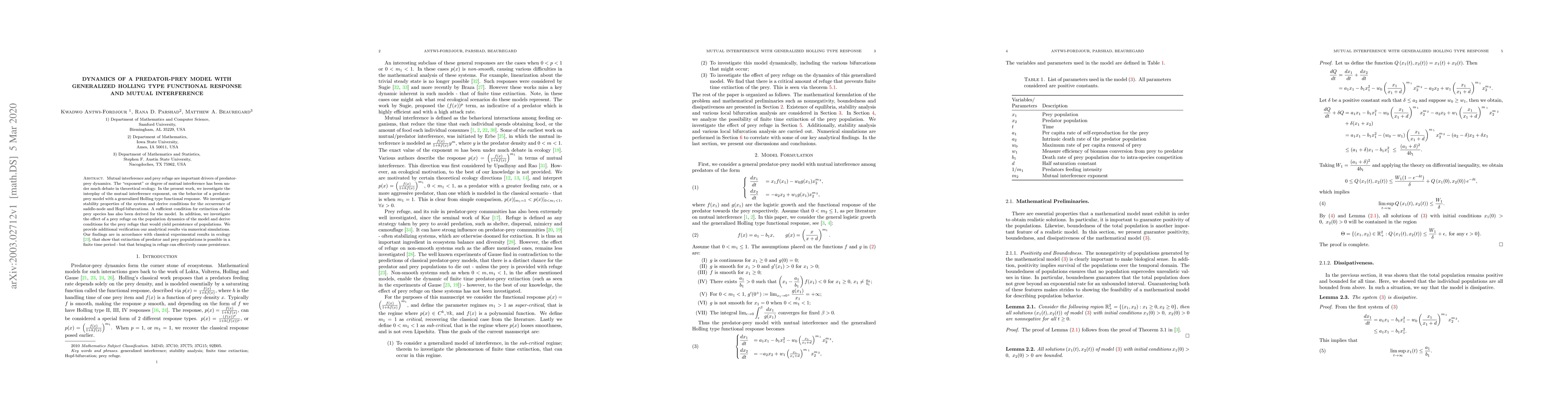 This paper explores the dynamics of a predator-prey model with a generalized Holling type functional response and mutual interference, analyzing the stability and bifurcation conditions. It derives conditions for predator-prey extinction and persistence under the influence of a prey refuge, supported by numerical simulations.