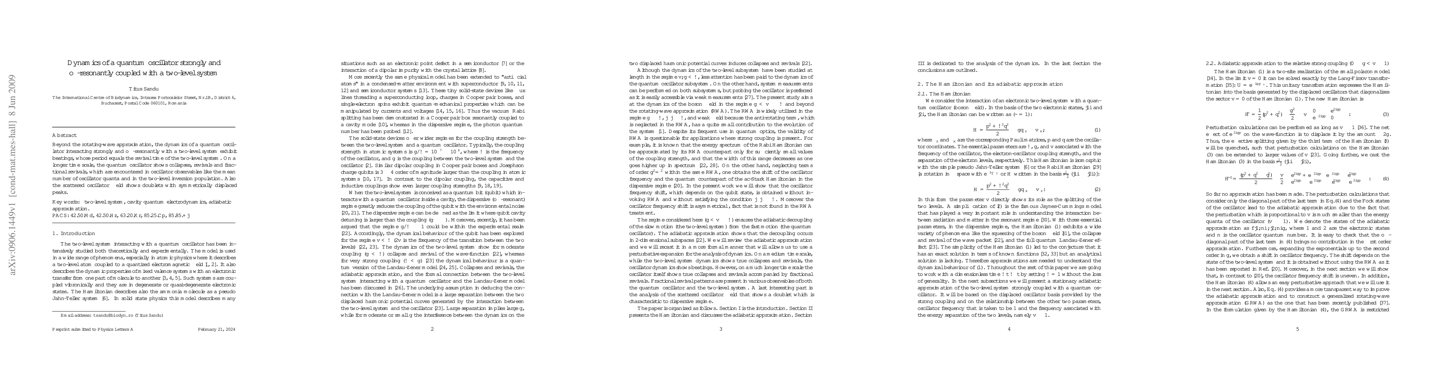 This paper investigates the dynamics of a quantum oscillator strongly coupled off-resonantly with a two-level system, revealing beatings and revival phenomena beyond the rotating-wave approximation, with observable effects in both oscillator and two-level system states. Long-term behavior includes collapses, revivals, and fractional revivals, alongside symmetrically displaced peaks in scattered oscillator field doublets.