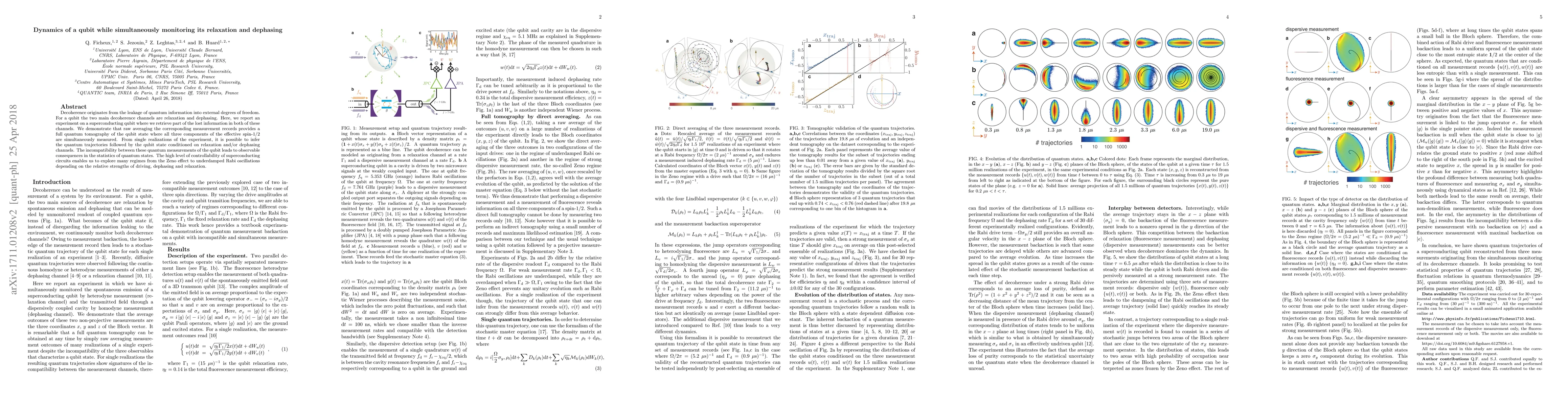 Decoherence originates from the leakage of quantum information into external degrees of freedom. For a qubit the two main decoherence channels are relaxation and dephasing. Here, we report an experiment on a superconducting qubit where we retrieve part of the lost information in both of these channels. We demonstrate that raw averaging the corresponding measurement records provides a full quantum tomography of the qubit state where all three components of the effective spin-1/2 are simultaneously measured. From single realizations of the experiment, it is possible to infer the quantum trajectories followed by the qubit state conditioned on relaxation and/or dephasing channels. The incompatibility between these quantum measurements of the qubit leads to observable consequences in the statistics of quantum states. The high level of controllability of superconducting circuits enables us to explore many regimes from the Zeno effect to underdamped Rabi oscillations depending on the relative strengths of driving, dephasing and relaxation.