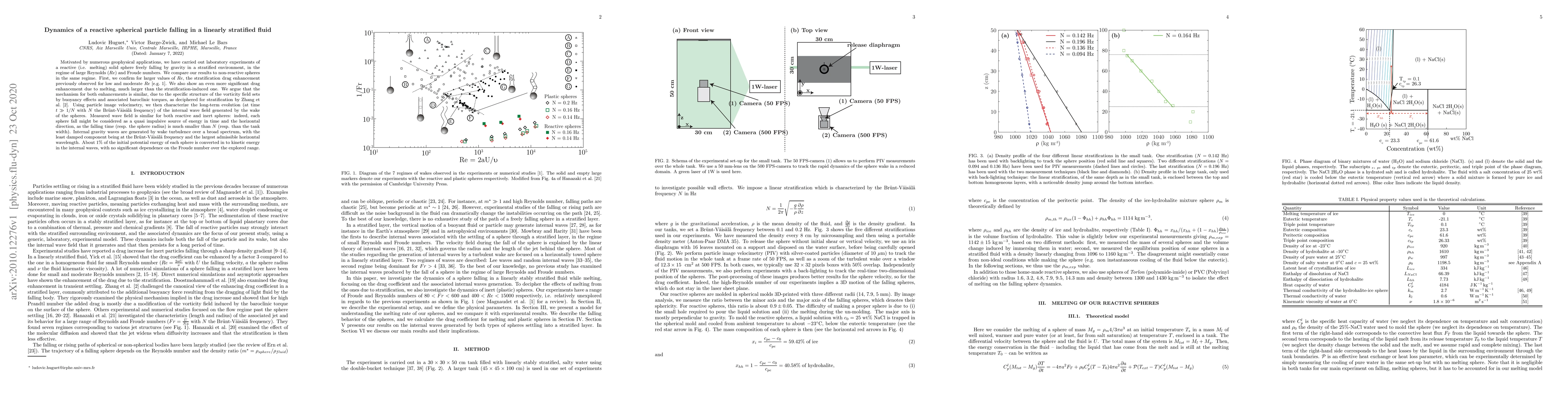 Researchers studied how a reactive sphere falls in a layered fluid and found that it generates significant internal waves, with about 1% of its initial potential energy converted to kinetic energy, similar to non-reactive spheres.