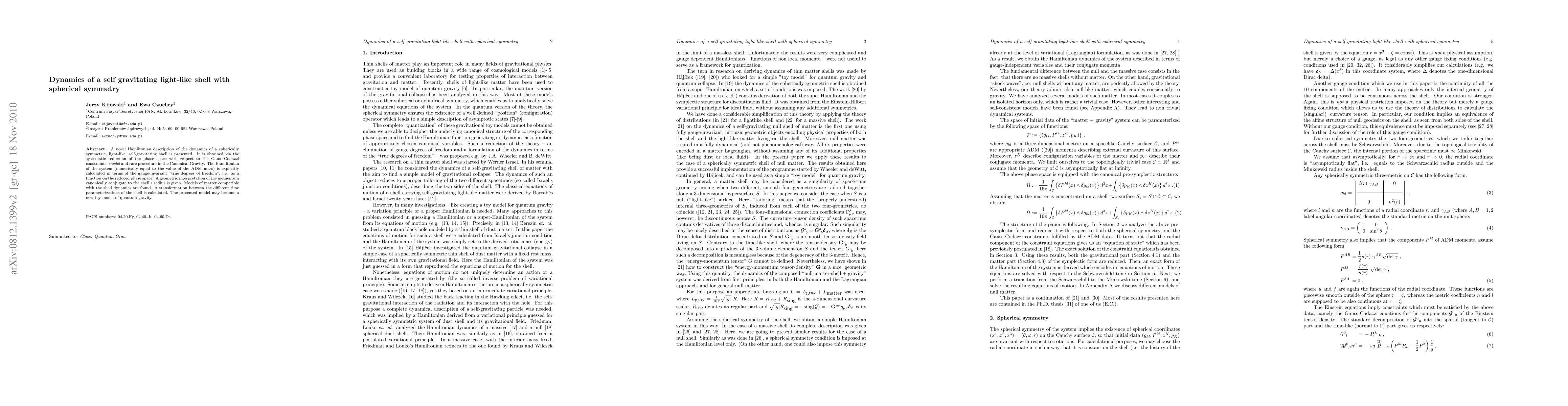 A novel Hamiltonian description of the dynamics of a spherically symmetric, light-like, self-gravitating shell is presented. It is obtained via the systematic reduction of the phase space with respect to the Gauss-Codazzi constraints, model and rare procedure in the Canonical Gravity. The Hamiltonian of the system (numerically equal to the value of the ADM mass) is explicitly calculated in terms of the gauge-invariant "true degrees of freedom", i.e. as a function on the reduced phase space. A geometric interpretation of the momentum canonically conjugate to the shell's radius is given. Models of matter compatible with the shell dynamics are found. A transformation between the different time parameterizations of the shell is calculated. The presented model may become a new toy model of quantum gravity.