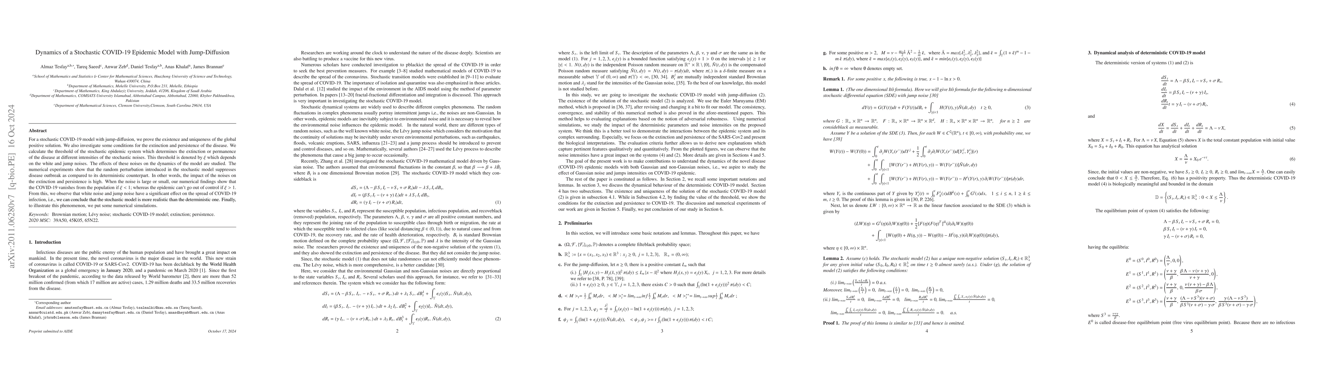 This paper explores a stochastic COVID-19 epidemic model incorporating jump-diffusion, proving the existence and uniqueness of a global positive solution. It identifies a threshold $\xi$ dependent on white and jump noise, showing that random perturbations suppress outbreaks compared to deterministic models, with $\xi < 1$ leading to disease extinction and $\xi > 1$ preventing uncontrolled spread.