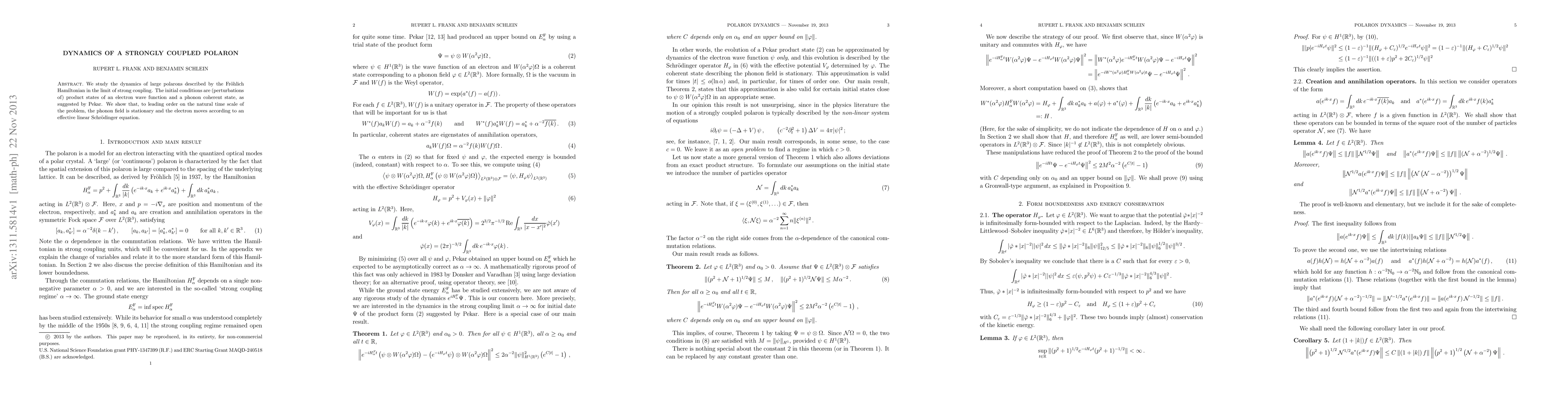 Researchers studied the dynamics of large polarons under strong coupling, finding that the phonon field remains stationary while the electron moves according to an effective linear Schrödinger equation.