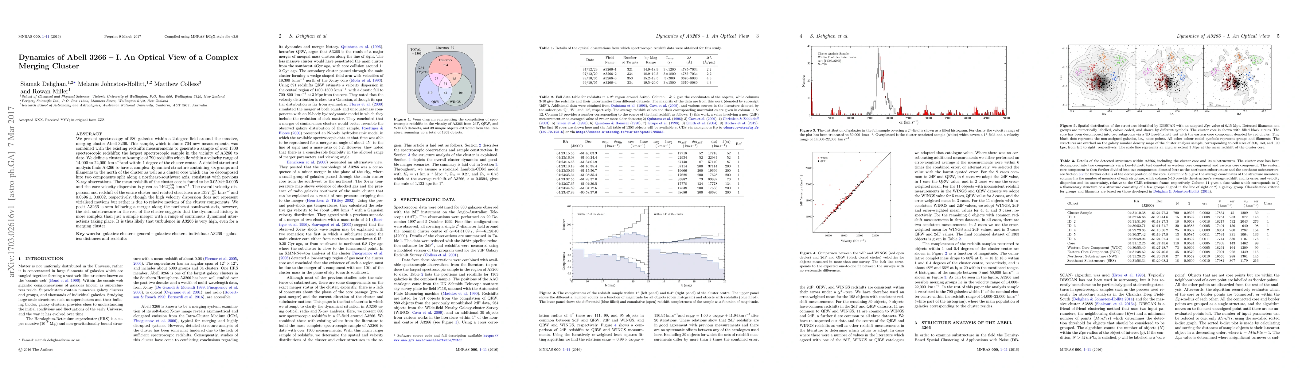 This study presents spectroscopy of 880 galaxies around Abell 3266, revealing a complex merging cluster with six groups and filaments, and a core split along a northeast-southwest axis, indicative of ongoing merger dynamics and high turbulence.