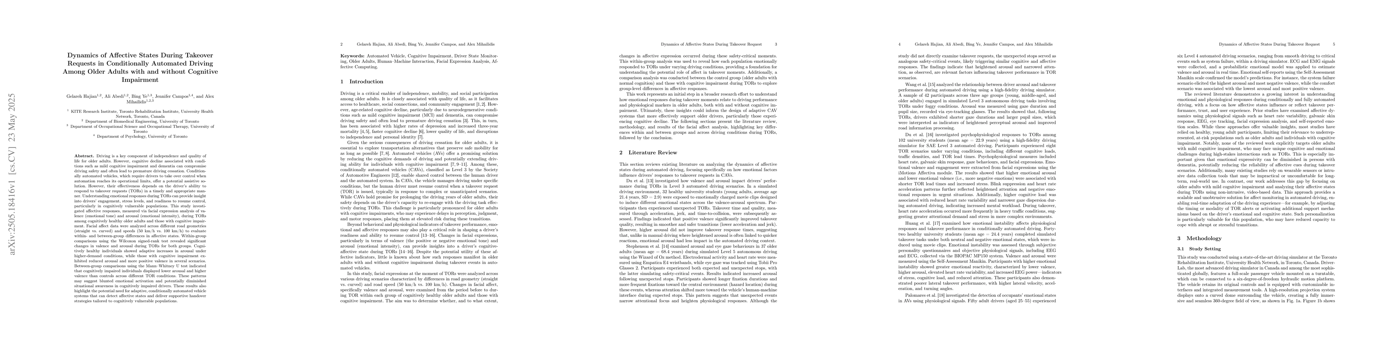 This study uniquely combines automated driving research with affective computing to understand how cognitive impairment influences emotional responses to TORs, paving the way for personalized and adaptive vehicle systems.