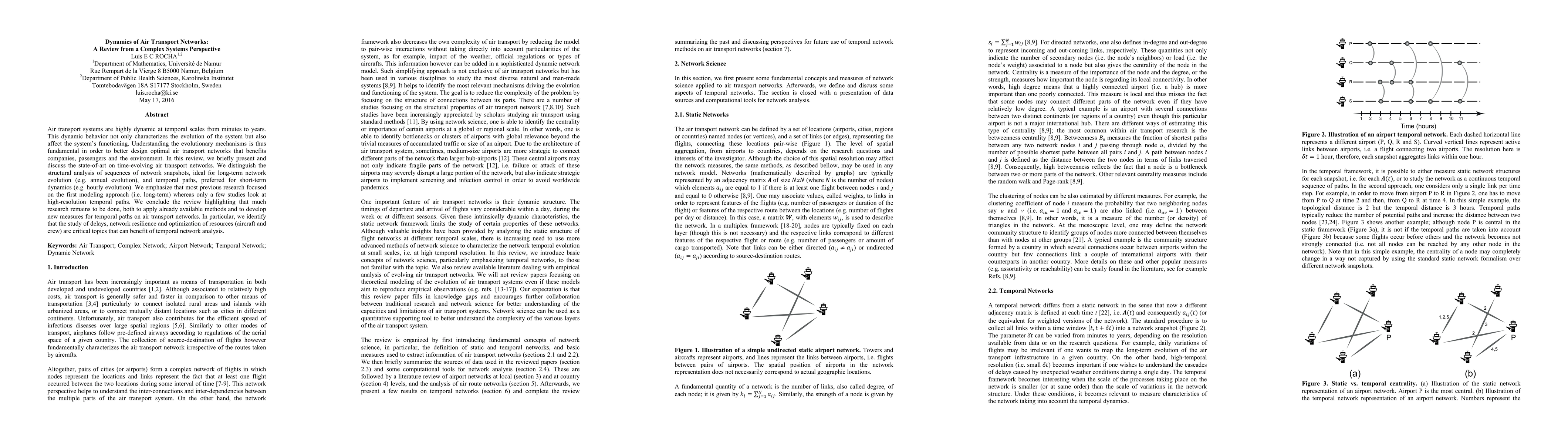 This review examines air transport networks from a complex systems perspective, highlighting the need for studying short-term dynamics and developing new measures for temporal paths. Key areas of focus include delays, network resilience, and optimization of resources to benefit companies, passengers, and the environment.