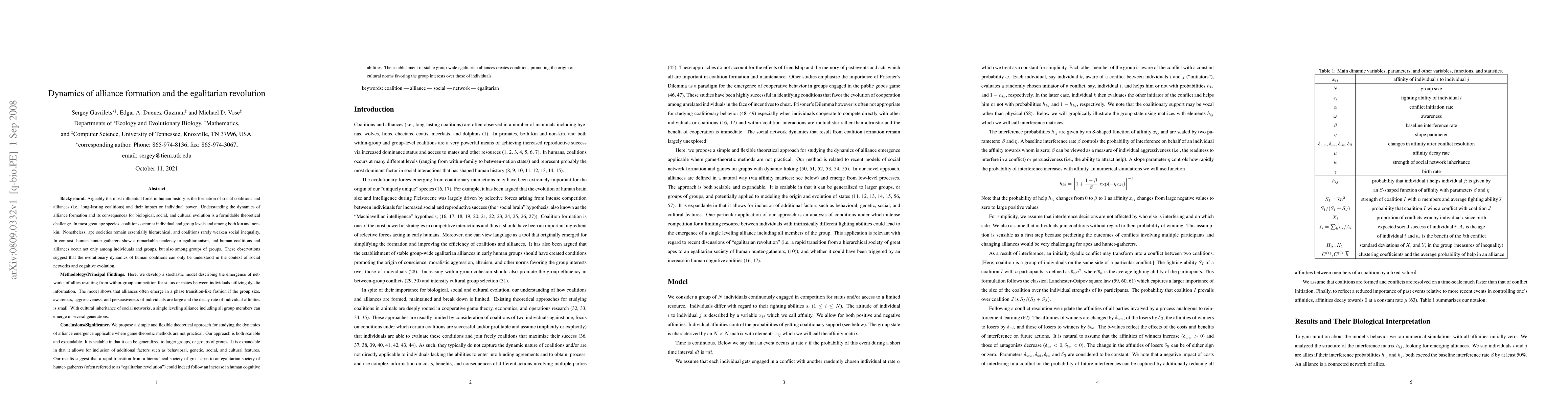 Arguably the most influential force in human history is the formation of social coalitions and alliances (i.e., long-lasting coalitions) and their impact on individual power. In most great ape species, coalitions occur at individual and group levels and among both kin and non-kin. Nonetheless, ape societies remain essentially hierarchical, and coalitions rarely weaken social inequality. In contrast, human hunter-gatherers show a remarkable tendency to egalitarianism, and human coalitions and alliances occur not only among individuals and groups, but also among groups of groups. Here, we develop a stochastic model describing the emergence of networks of allies resulting from within-group competition for status or mates between individuals utilizing dyadic information. The model shows that alliances often emerge in a phase transition-like fashion if the group size, awareness, aggressiveness, and persuasiveness of individuals are large and the decay rate of individual affinities is small. With cultural inheritance of social networks, a single leveling alliance including all group members can emerge in several generations. Our results suggest that a rapid transition from a hierarchical society of great apes to an egalitarian society of hunter-gatherers (often referred to as "egalitarian revolution") could indeed follow an increase in human cognitive abilities. The establishment of stable group-wide egalitarian alliances creates conditions promoting the origin of cultural norms favoring the group interests over those of individuals.