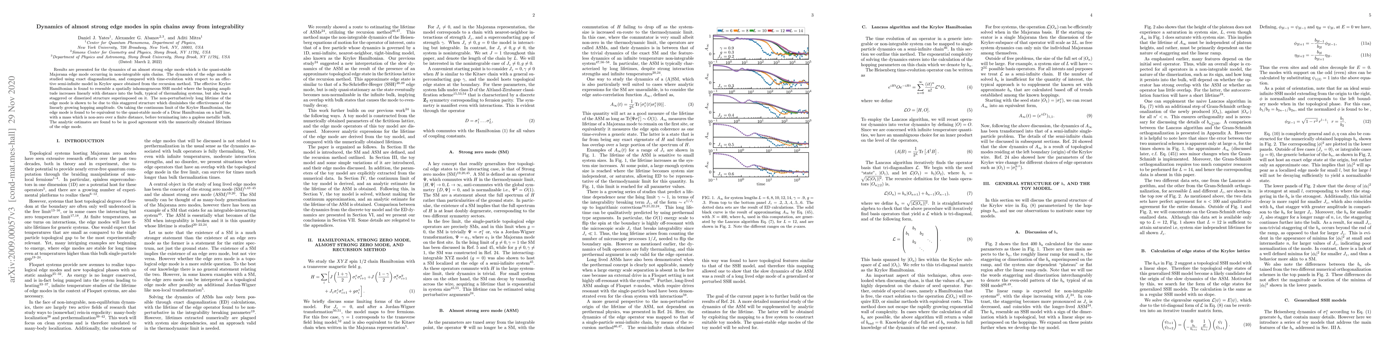 Results are presented for the dynamics of an almost strong edge mode which is the quasi-stable Majorana edge mode occurring in non-integrable spin chains. The dynamics of the edge mode is studied using exact diagonalization, and compared with time-evolution with respect to an effective semi-infinite model in Krylov space obtained from the recursion method. The effective Krylov Hamiltonian is found to resemble a spatially inhomogeneous SSH model where the hopping amplitude increases linearly with distance into the bulk, typical of thermalizing systems, but also has a staggered or dimerized structure superimposed on it. The non-perturbatively long lifetime of the edge mode is shown to be due to this staggered structure which diminishes the effectiveness of the linearly growing hopping amplitude. On taking the continuum limit of the Krylov Hamiltonian, the edge mode is found to be equivalent to the quasi-stable mode of a Dirac Hamiltonian on a half line, with a mass which is non-zero over a finite distance, before terminating into a gapless metallic bulk. The analytic estimates are found to be in good agreement with the numerically obtained lifetimes of the edge mode.