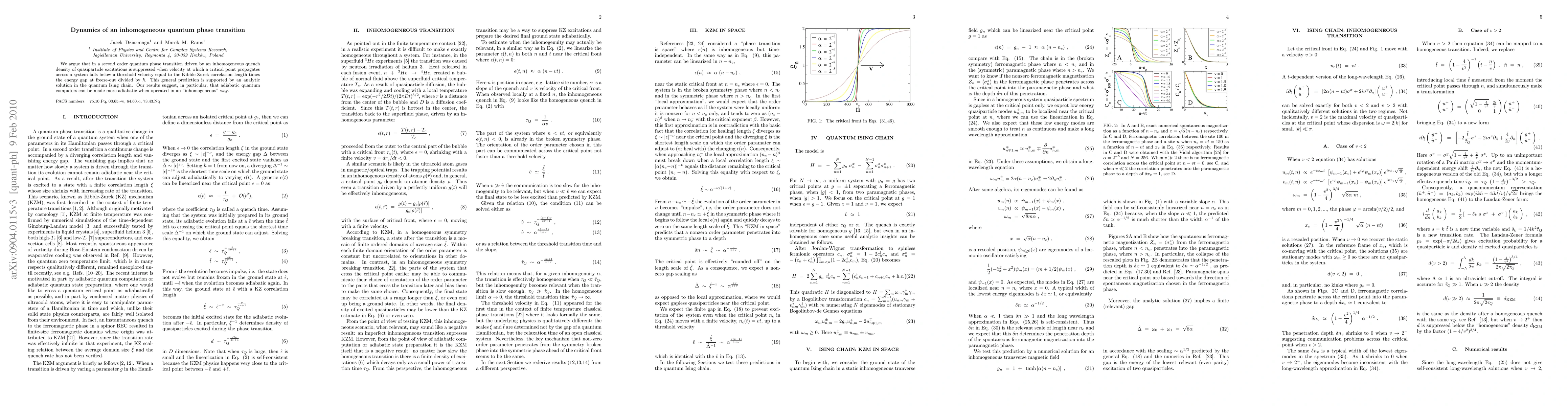 Researchers found that a specific threshold velocity determines whether an inhomogeneous quantum phase transition is suppressed, with implications for the adiabaticity of quantum computers.