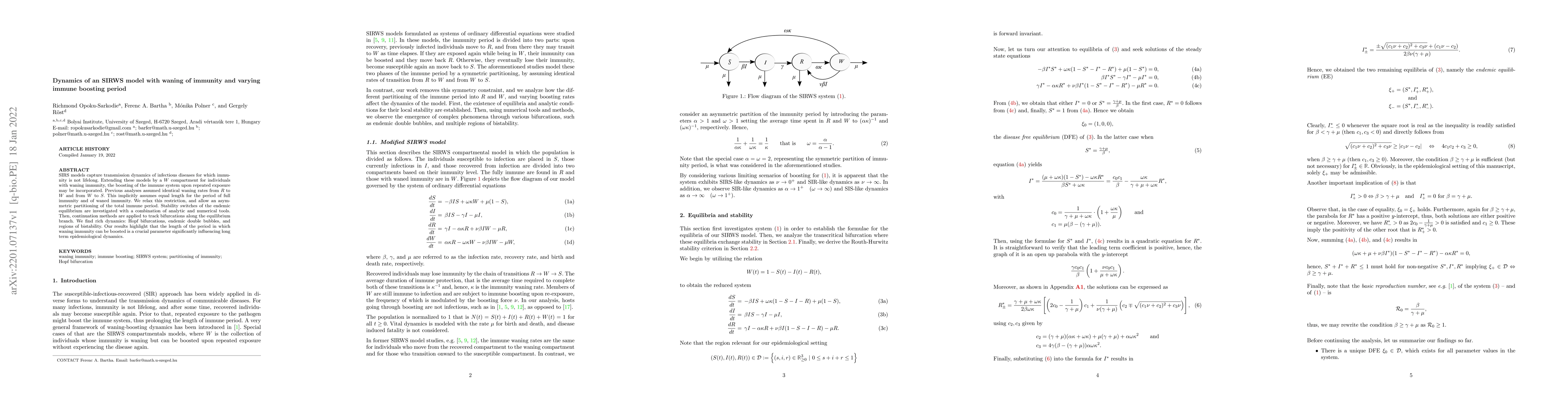 This paper explores an SIRWS model where immunity wanes and can be boosted, allowing for asymmetric immune periods. It investigates stability and bifurcations, revealing complex dynamics including Hopf bifurcations, endemic double bubbles, and bistability, emphasizing the importance of the boosting period length for long-term disease dynamics.