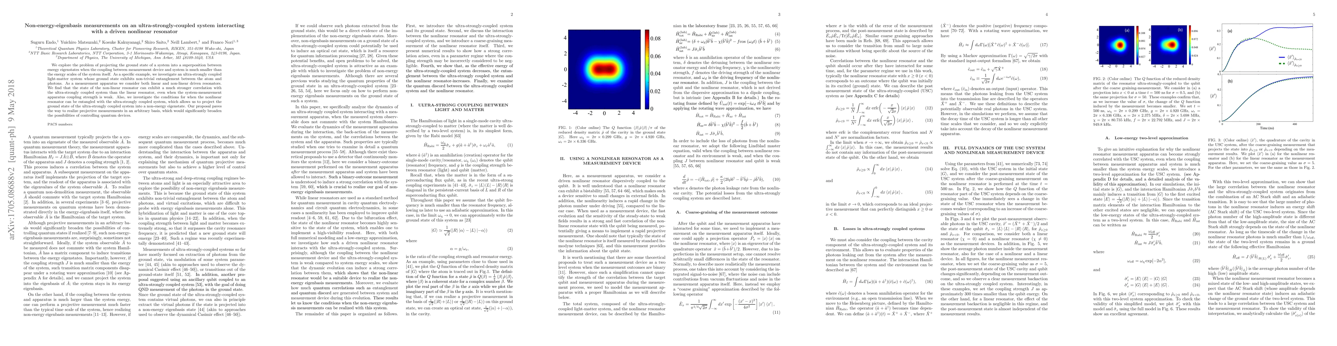 This paper explores the dynamics of an ultra-strongly-coupled light-matter system interacting with a driven nonlinear resonator, demonstrating strong correlations and phase changes in the light-matter system based on measurements from the resonator. It investigates conditions under which the nonlinear resonator can become entangled with the system, enabling projection of the ground state into a non-energy eigenstate.