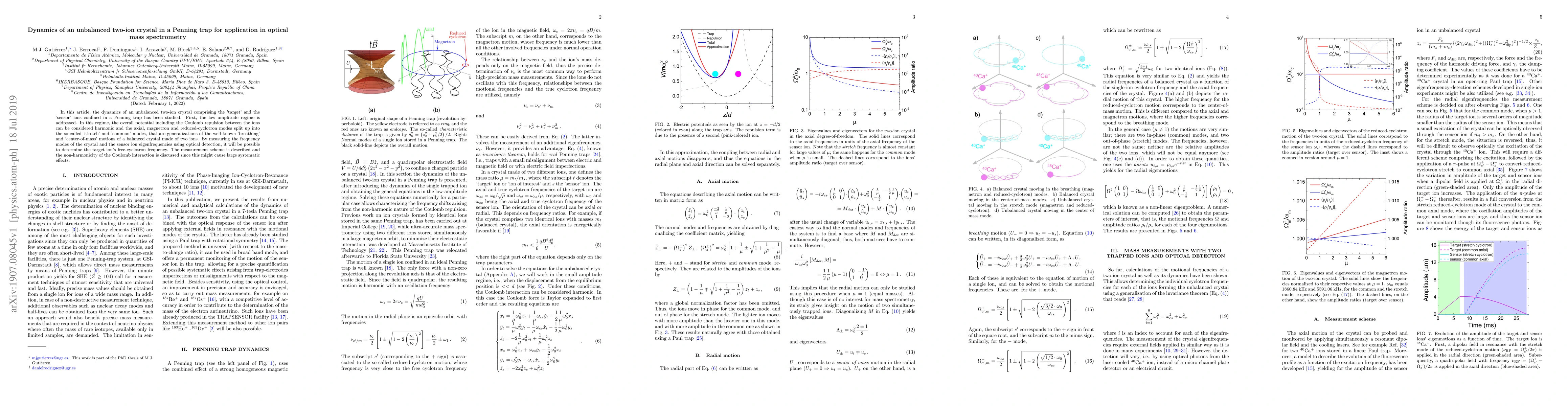 Researchers studied the dynamics of an unbalanced two-ion crystal in a Penning trap, enabling the measurement of a target ion's free-cyclotron frequency with high precision.