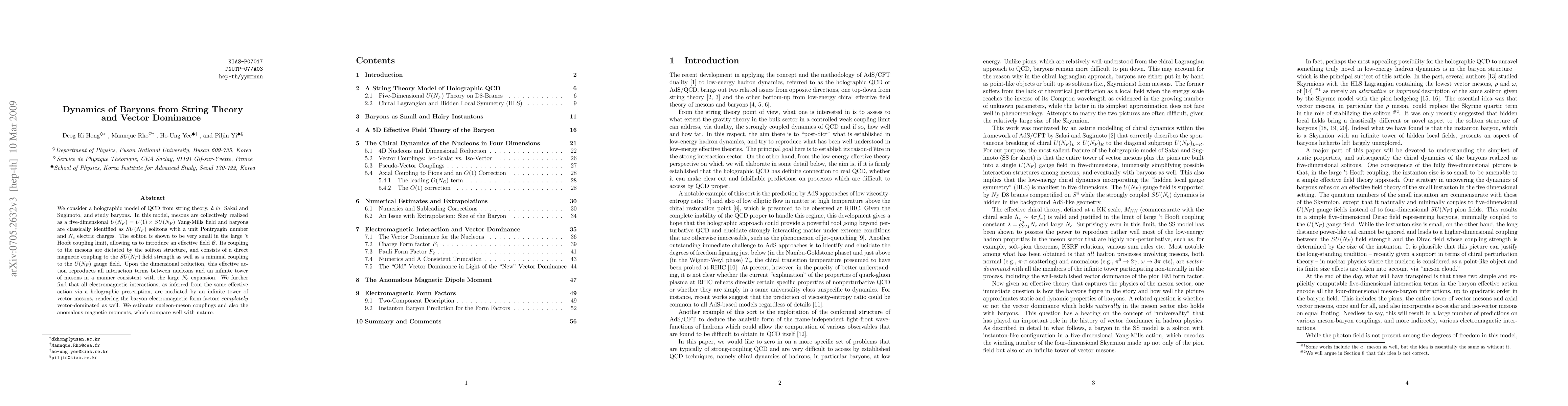 This paper explores baryon dynamics in a holographic QCD model derived from string theory, identifying baryons as $SU(N_F)$ solitons. The study reveals that electromagnetic interactions are mediated by an infinite tower of vector mesons, leading to a vector-dominated description of baryon electromagnetic form factors.