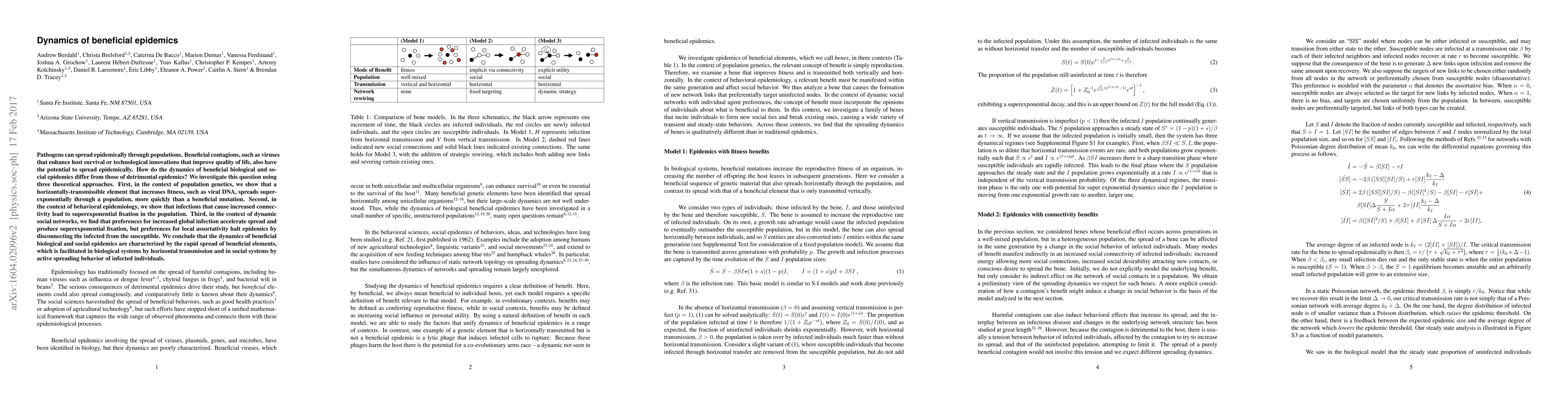 Research shows that beneficial epidemics can spread rapidly through populations via horizontal transmission, social behavior, or technological innovations, leading to superexponential fixation.
