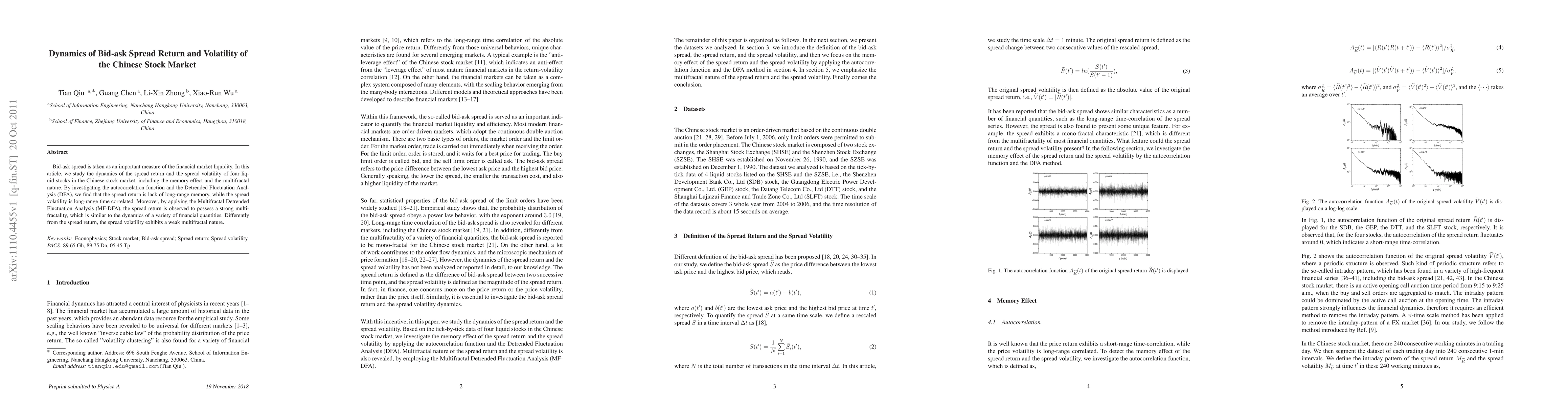 This paper investigates the dynamics of bid-ask spread return and volatility in four liquid Chinese stocks, revealing that spread return lacks long-range memory but exhibits strong multifractality, while spread volatility shows long-range time correlation and weak multifractality.