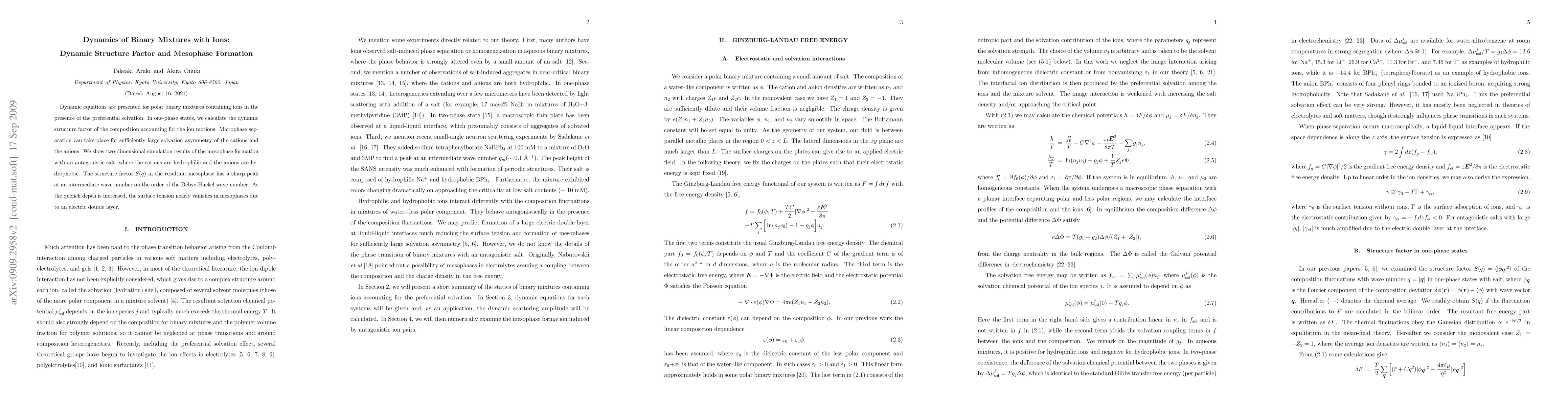 Dynamic equations are presented for polar binary mixtures containing ions in the presence of the preferential solvation. In one-phase states, we calculate the dynamic structure factor of the composition accounting for the ion motions. Microphase separation can take place for sufficiently large solvation asymmetry of the cations and the anions. We show two-dimensional simulation results of the mesophase formation with an antagonistic salt, where the cations are hydrophilic and the anions are hydrophobic. The structure factor S(q) in the resultant mesophase has a sharp peak at an intermediate wave number on the order of the Debye-Huckel wave number. As the quench depth is increased, the surface tension nearly vanishes in mesophases due to an electric double layer.