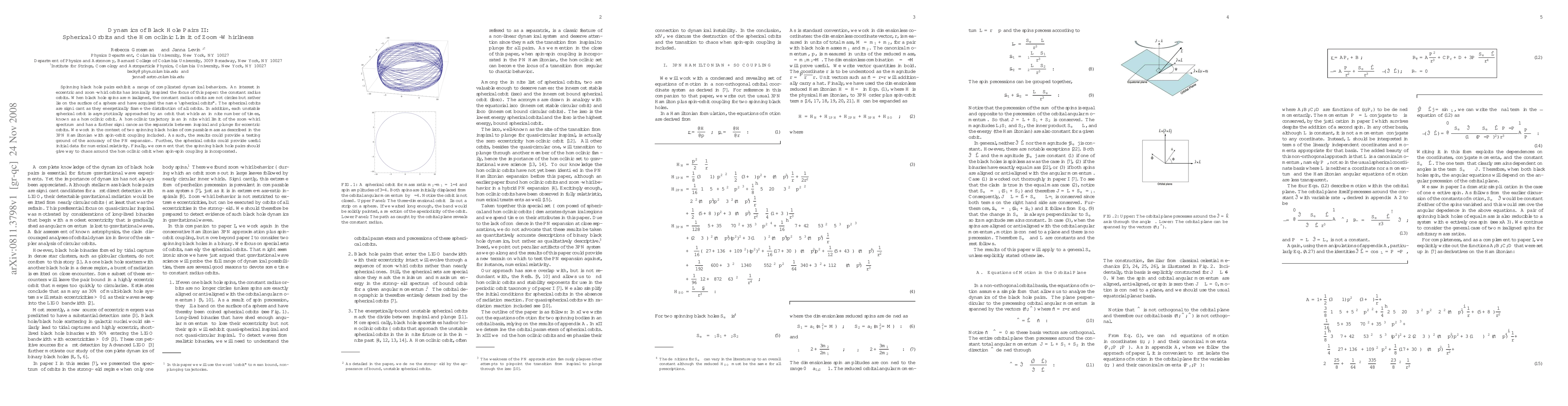 This paper investigates the dynamics of spinning black hole pairs, focusing on spherical orbits that occur when the black hole spins are misaligned. These orbits, lying on a spherical surface rather than in a plane, frame the distribution of all possible orbits and are approached by homoclinic orbits that whirl infinitely, marking the boundary between inspiral and plunge for eccentric orbits.