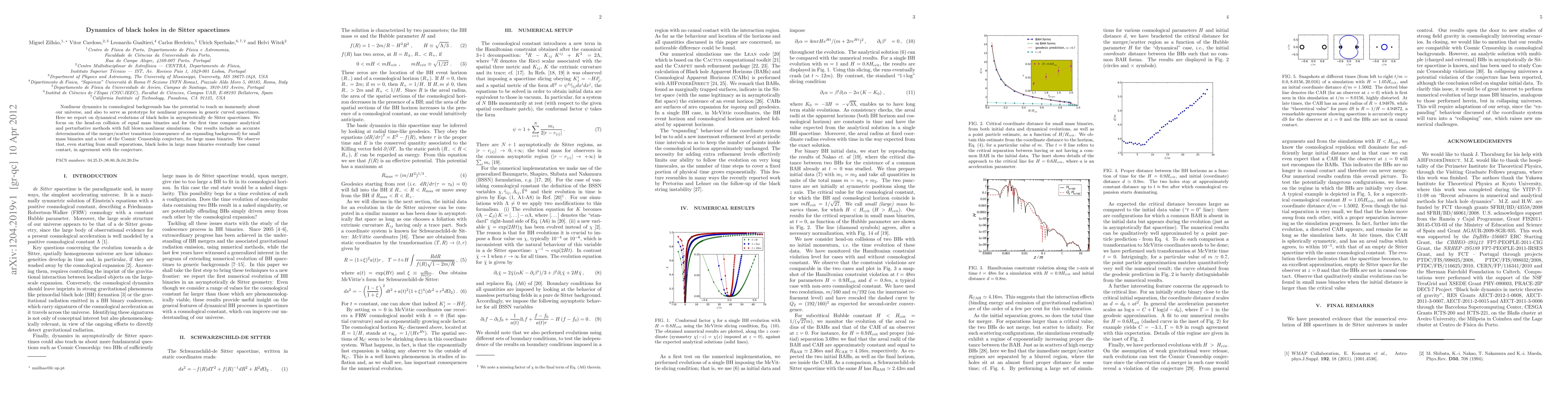 The paper presents a detailed numerical setup and results for black hole dynamics in de Sitter spacetimes, including the use of modified BSSN variables and boundary conditions to handle the cosmological constant.