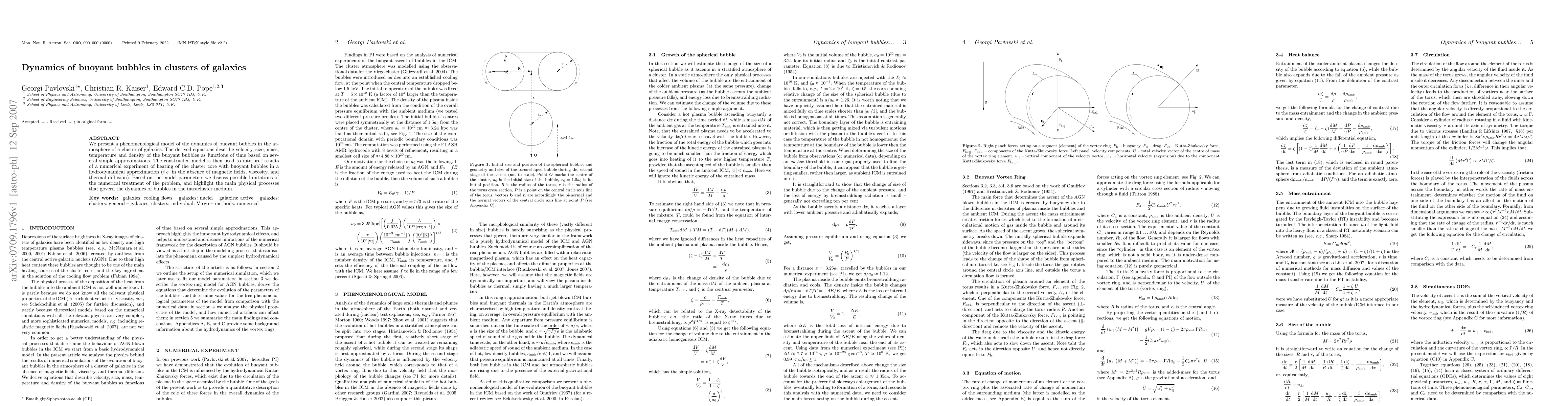 This paper develops a phenomenological model to describe the dynamics of buoyant bubbles in galaxy clusters, focusing on their velocity, size, mass, temperature, and density over time. The model is applied to interpret numerical simulations of cluster core heating, highlighting key physical processes and limitations of the numerical approach.