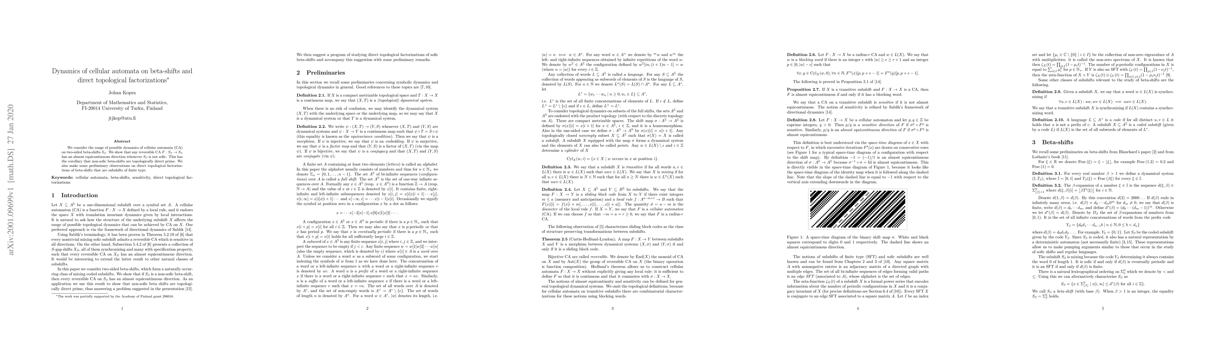 This paper explores the dynamics of reversible cellular automata on two-sided beta-shifts, demonstrating that non-sofic beta-shifts exhibit almost equicontinuous directions and are topologically direct prime. Preliminary observations on direct topological factorizations of beta-shifts that are subshifts of finite type are also presented.