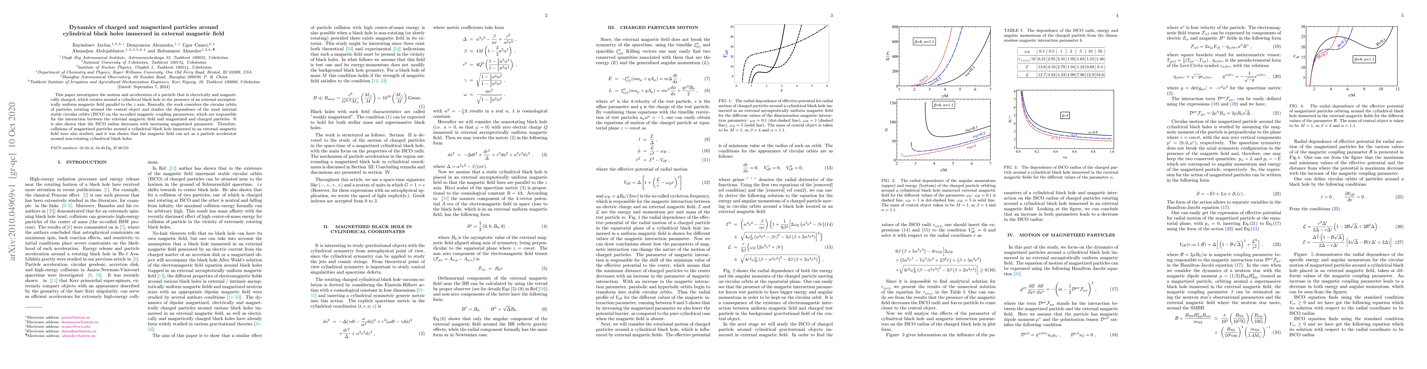This paper investigates the motion and acceleration of a particle that is electrically and magnetically charged, which rotates around a cylindrical black hole in the presence of an external asymptotically uniform magnetic field parallel to the z axis. Basically, the work considers the circular orbits of particles rotating around the central object and studies the dependence of the most internal stable circular orbits (ISCO) on the so-called magnetic coupling parameters, which are responsible for the interaction between the external magnetic field and magnetized and charged particles. It is also shown that the ISCO radius decreases with increasing magnetized parameter. Therefore, collisions of magnetized particles around a cylindrical black hole immersed in an external magnetic field were also studied, and it was shown that the magnetic field can act as a particle accelerator around non-rotating cylindrical black holes.