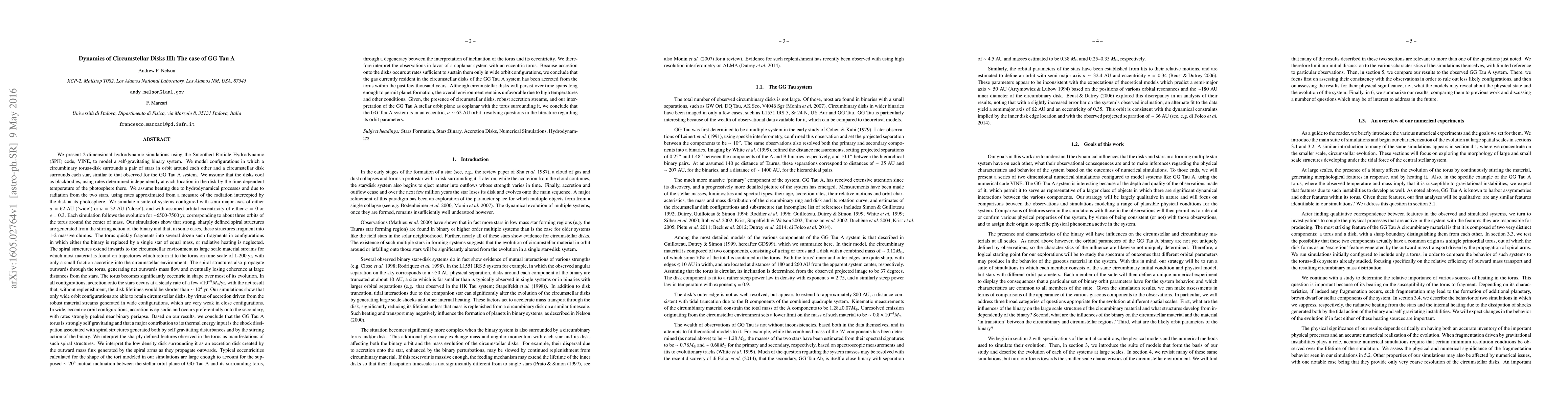 Researchers used simulations to model a binary system similar to GG Tau A, finding that spiral structures form in circumstellar disks, leading to short-lived disk lifetimes due to high temperatures.