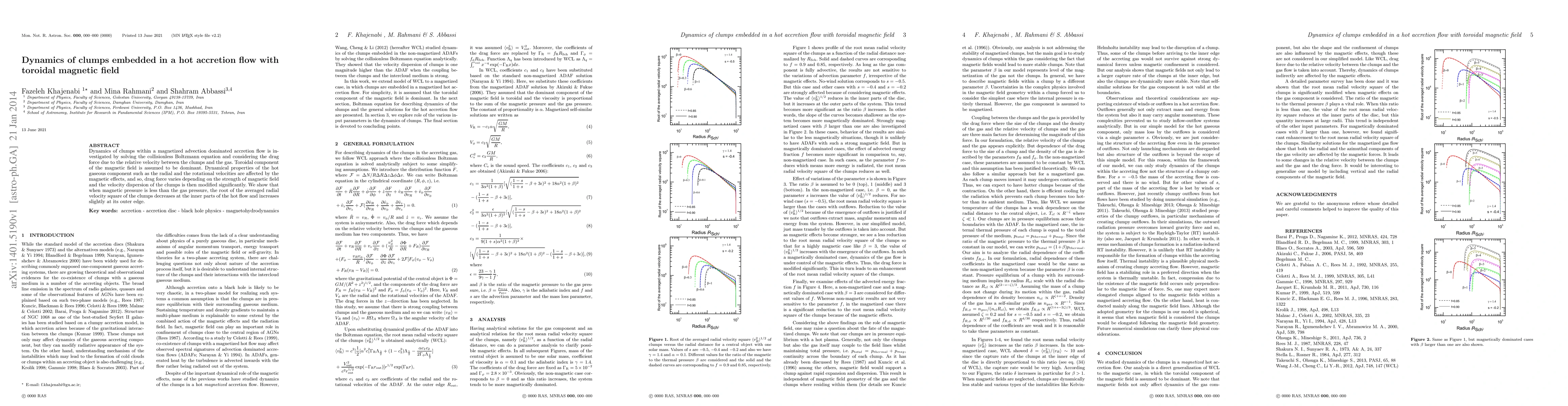 This paper investigates the dynamics of clumps within a magnetized, advection-dominated accretion flow, focusing on the toroidal magnetic field's influence. It finds that magnetic effects modify the drag force and velocity dispersion of clumps, with radial velocity of clumps decreasing inward and slightly increasing outward when magnetic pressure is lower than gas pressure.