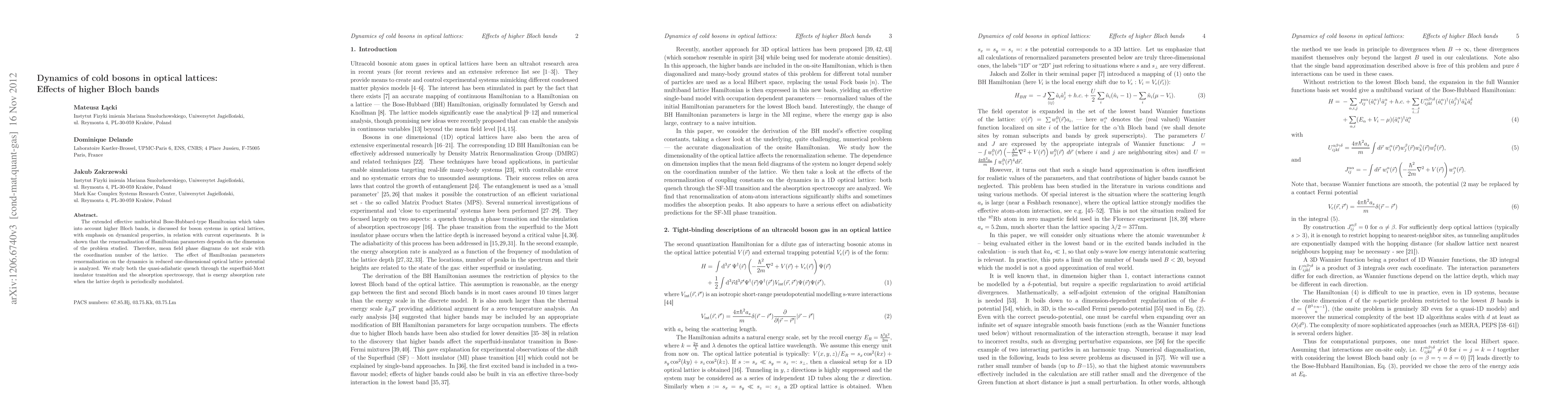 Researchers studied the behavior of bosons in optical lattices, finding that higher Bloch bands affect dynamics and phase diagrams, leading to non-scaling predictions for mean field calculations.