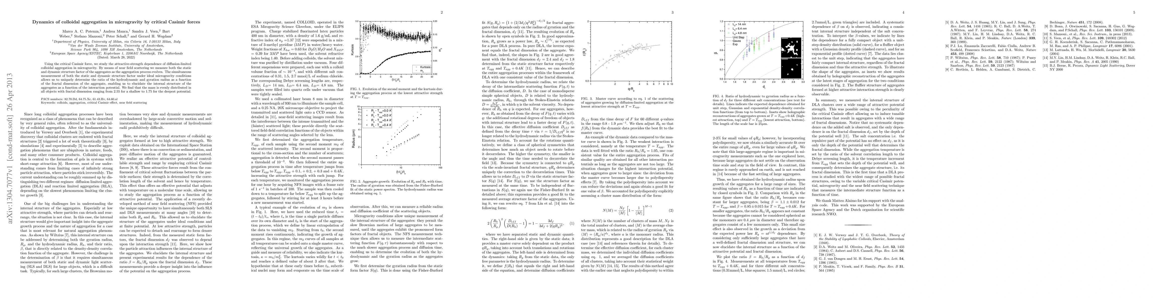 The paper presents a novel approach to measuring and analyzing colloidal aggregation dynamics in microgravity using near-field scattering, allowing for the determination of internal structure based on fractal dimension and interaction potential.
