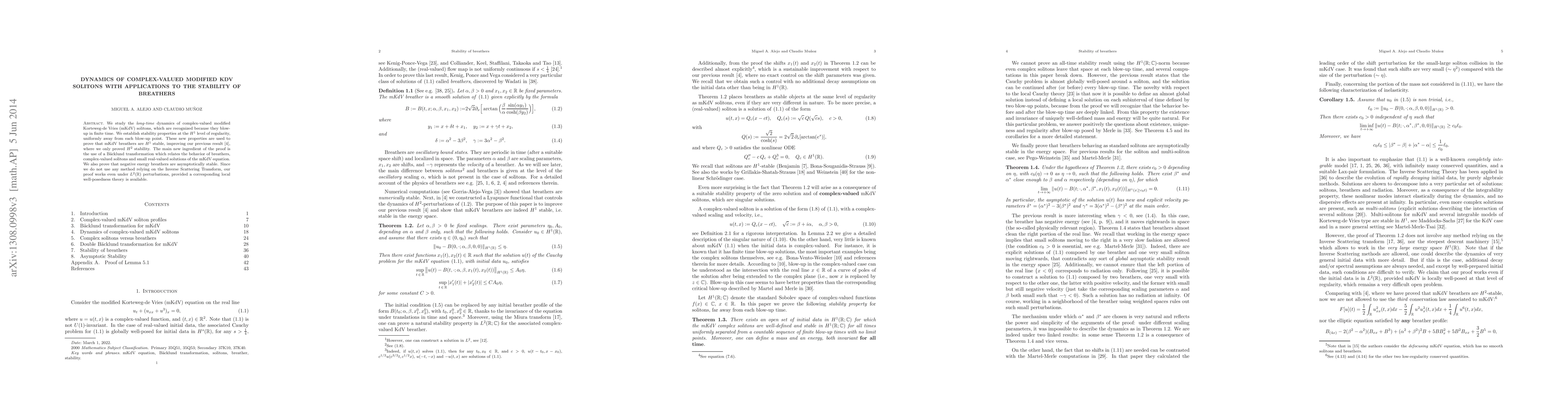 We study the long-time dynamics of complex-valued modified Korteweg-de Vries (mKdV) solitons, which are recognized because they blow-up in finite time. We establish stability properties at the H^1 level of regularity, uniformly away from each blow-up point. These new properties are used to prove that mKdV breathers are H^1 stable, improving our previous result, where we only proved H^2 stability. The main new ingredient of the proof is the use of a B\"acklund transformation which links the behavior of breathers, complex-valued solitons and small real-valued solutions of the mKdV equation. We also prove that negative energy breathers are asymptotically stable. Since we do not use any method relying on the Inverse Scattering Transformation, our proof works even under rough perturbations, provided a corresponding local well-posedness theory is available.