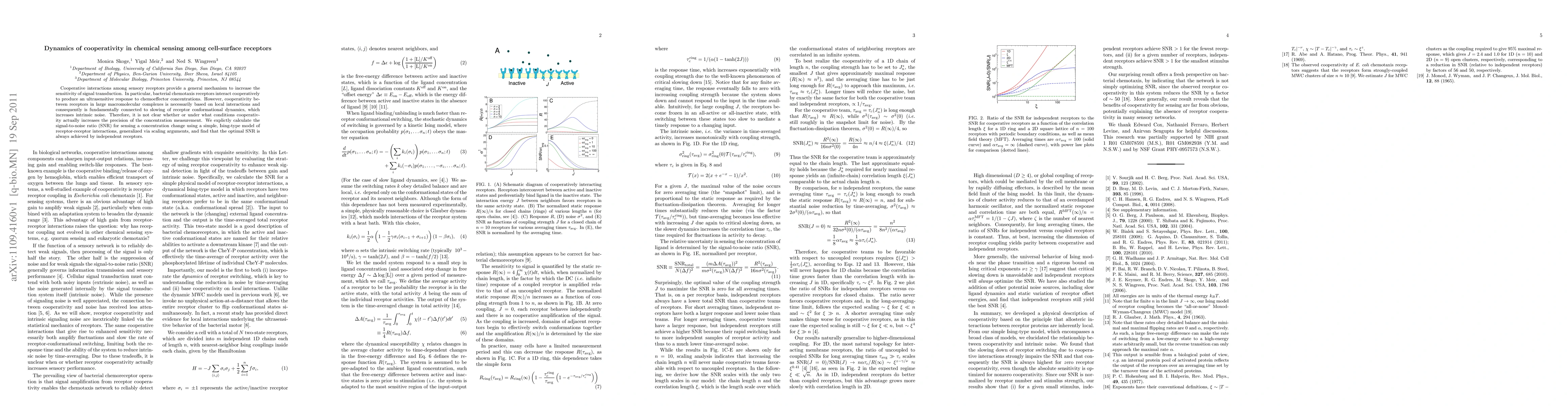 Cooperative interactions among sensory receptors provide a general mechanism to increase the sensitivity of signal transduction. In particular, bacterial chemotaxis receptors interact cooperatively to produce an ultrasensitive response to chemoeffector concentrations. However, cooperativity between receptors in large macromolecular complexes is necessarily based on local interactions and consequently is fundamentally connected to slowing of receptor conformational dynamics, which increases intrinsic noise. Therefore, it is not clear whether or under what conditions cooperativity actually increases the precision of the concentration measurement. We explictly calculate the signal-to-noise ratio (SNR) for sensing a concentration change using a simple, Ising-type model of receptor-receptor interactions, generalized via scaling arguments, and find that the optimal SNR is always achieved by independent receptors.